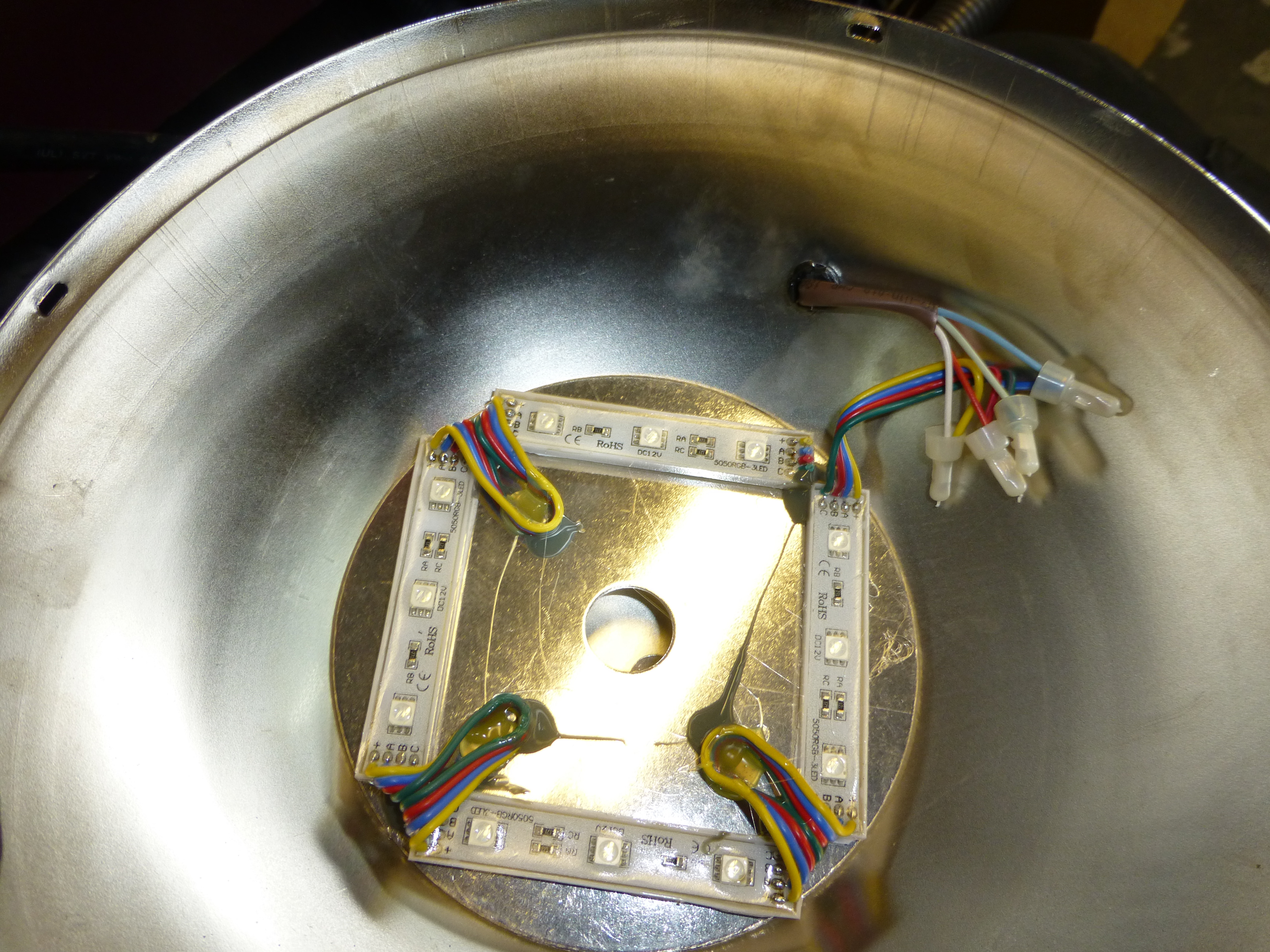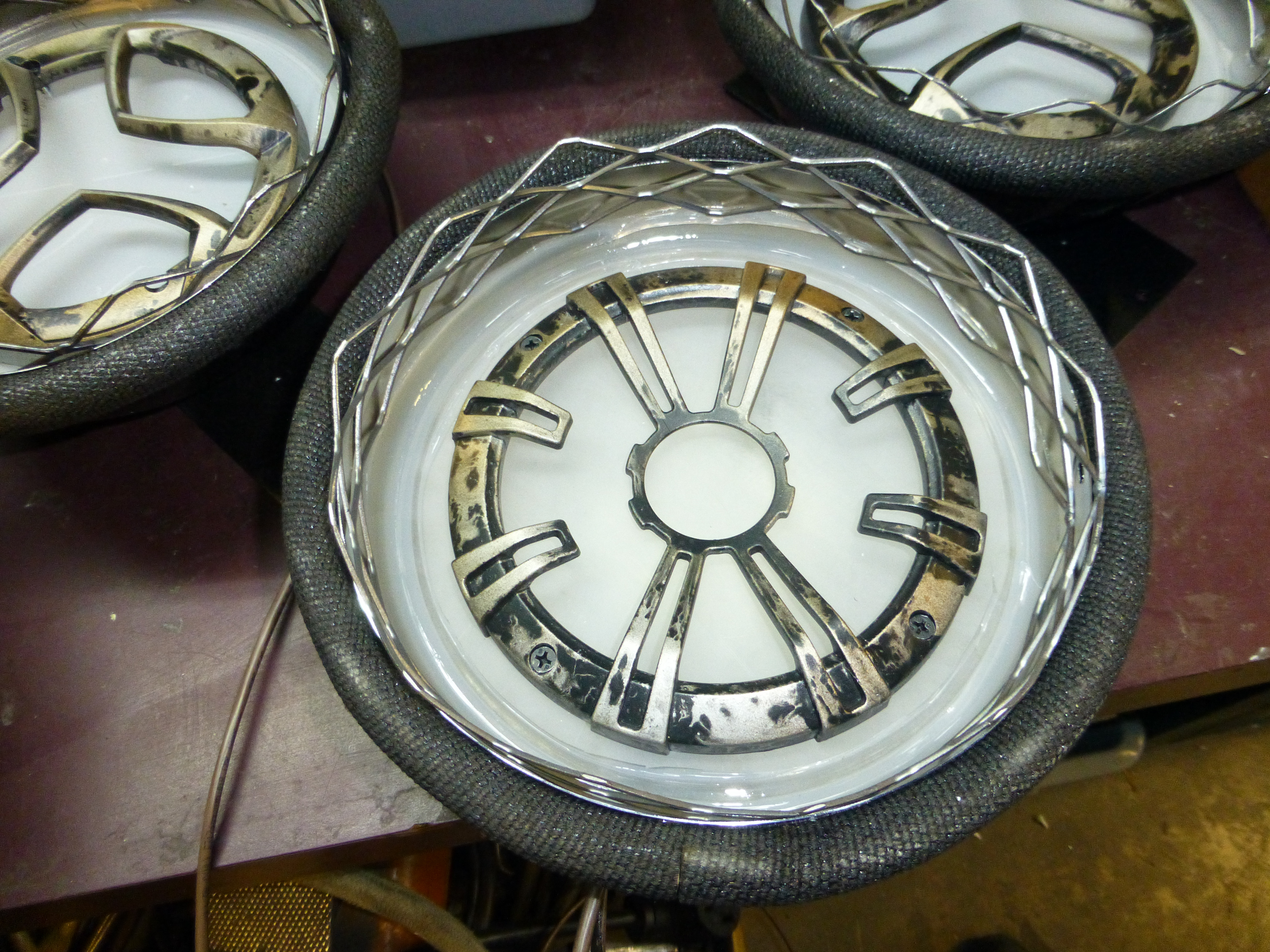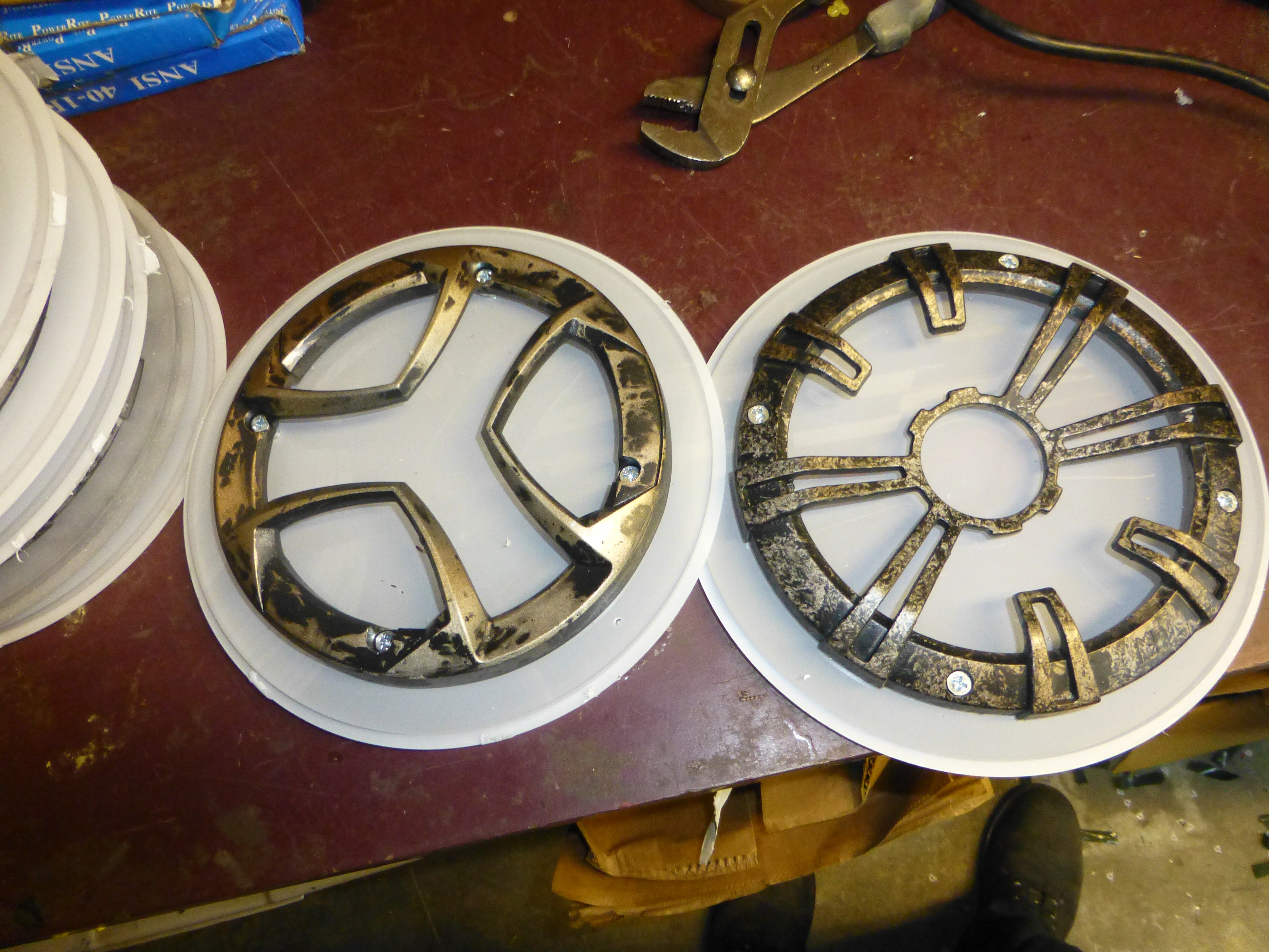 Turns out some old hubcaps make perfect housings for the lights.