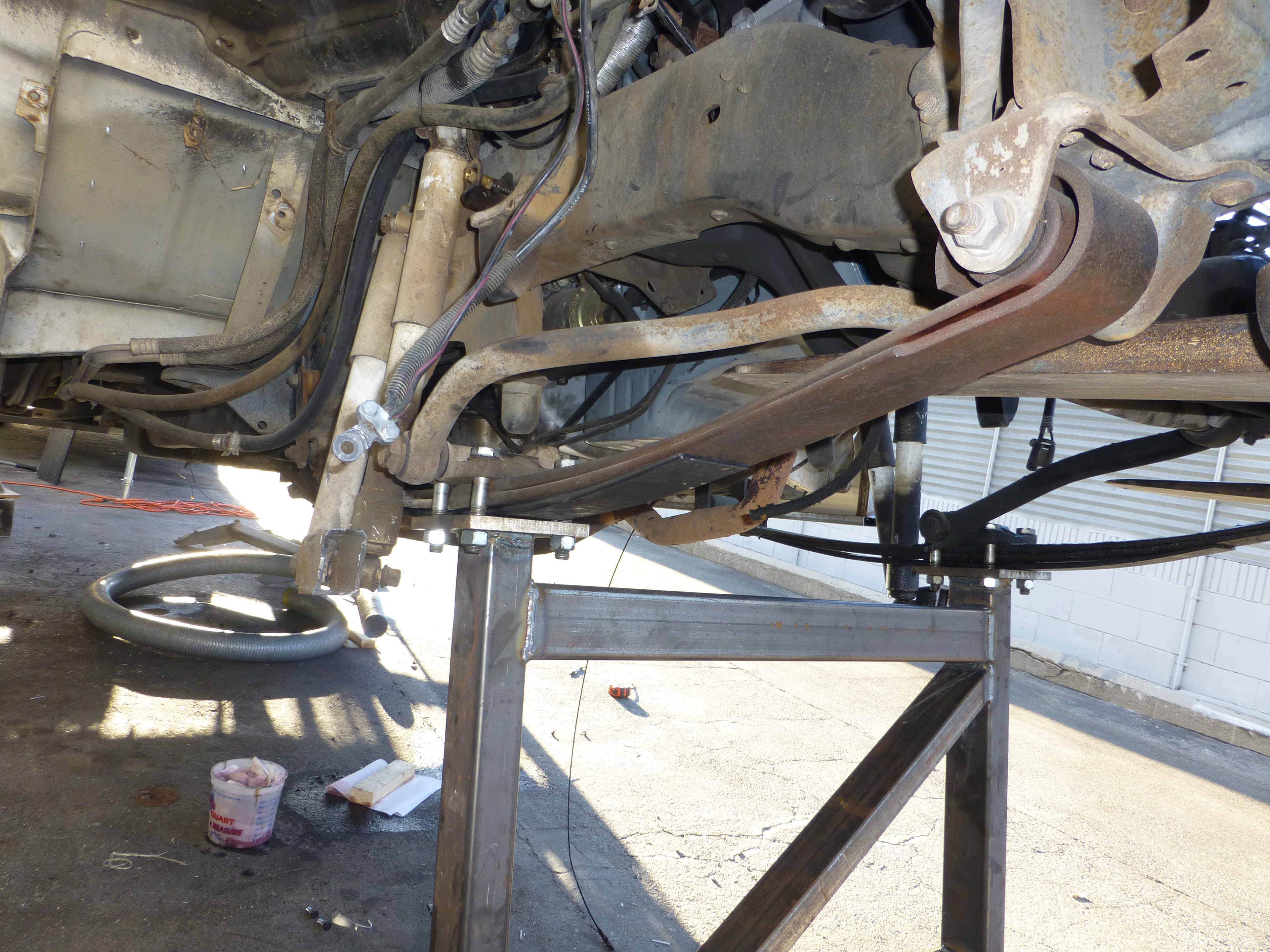 A "slight" adjustment was needed on the original leaf spring mounting blocks. Yes, I’m aware it’s a very steep angle, but just bear with me. This is going to be cool and that’ll totally make up for it.