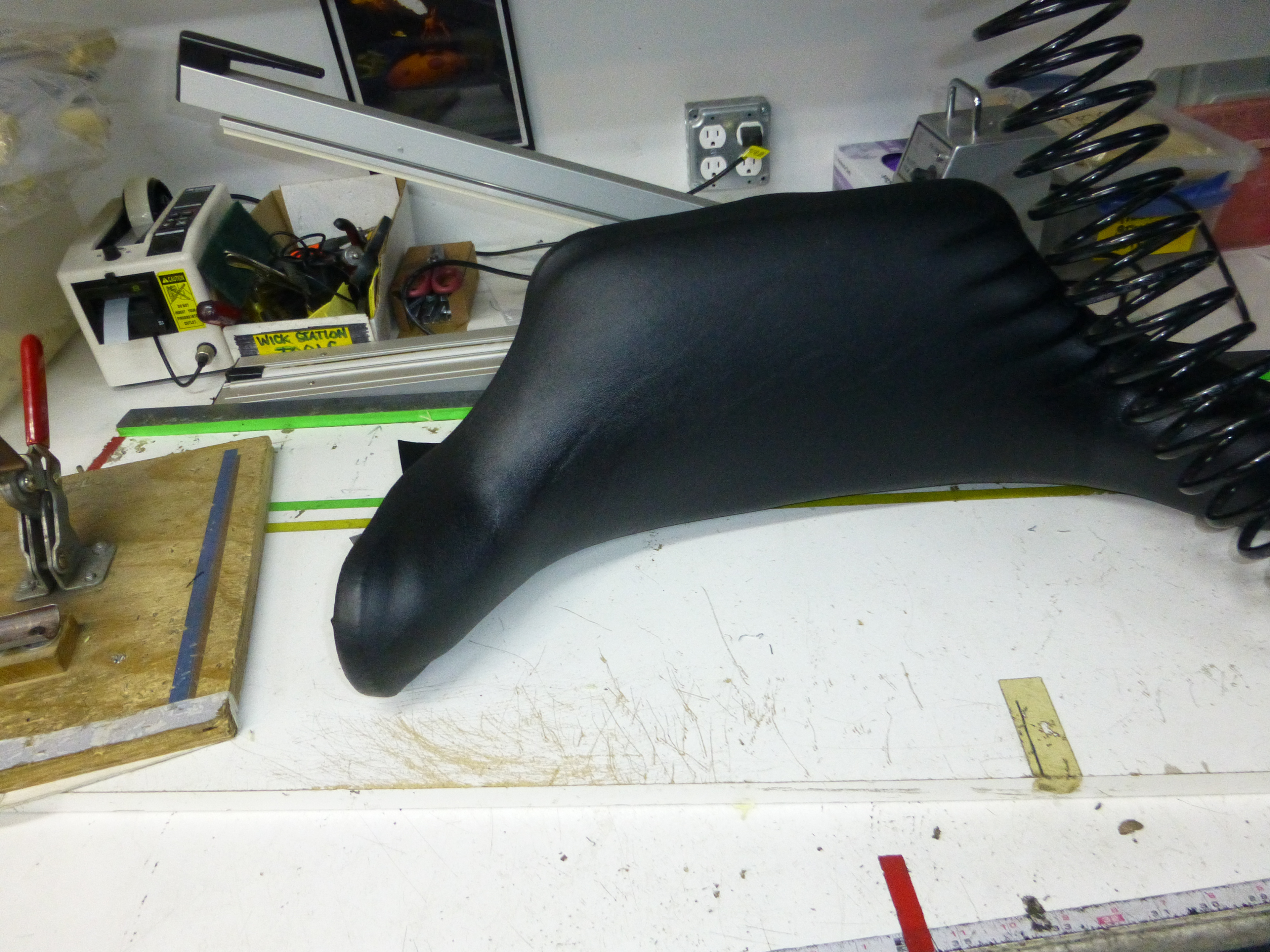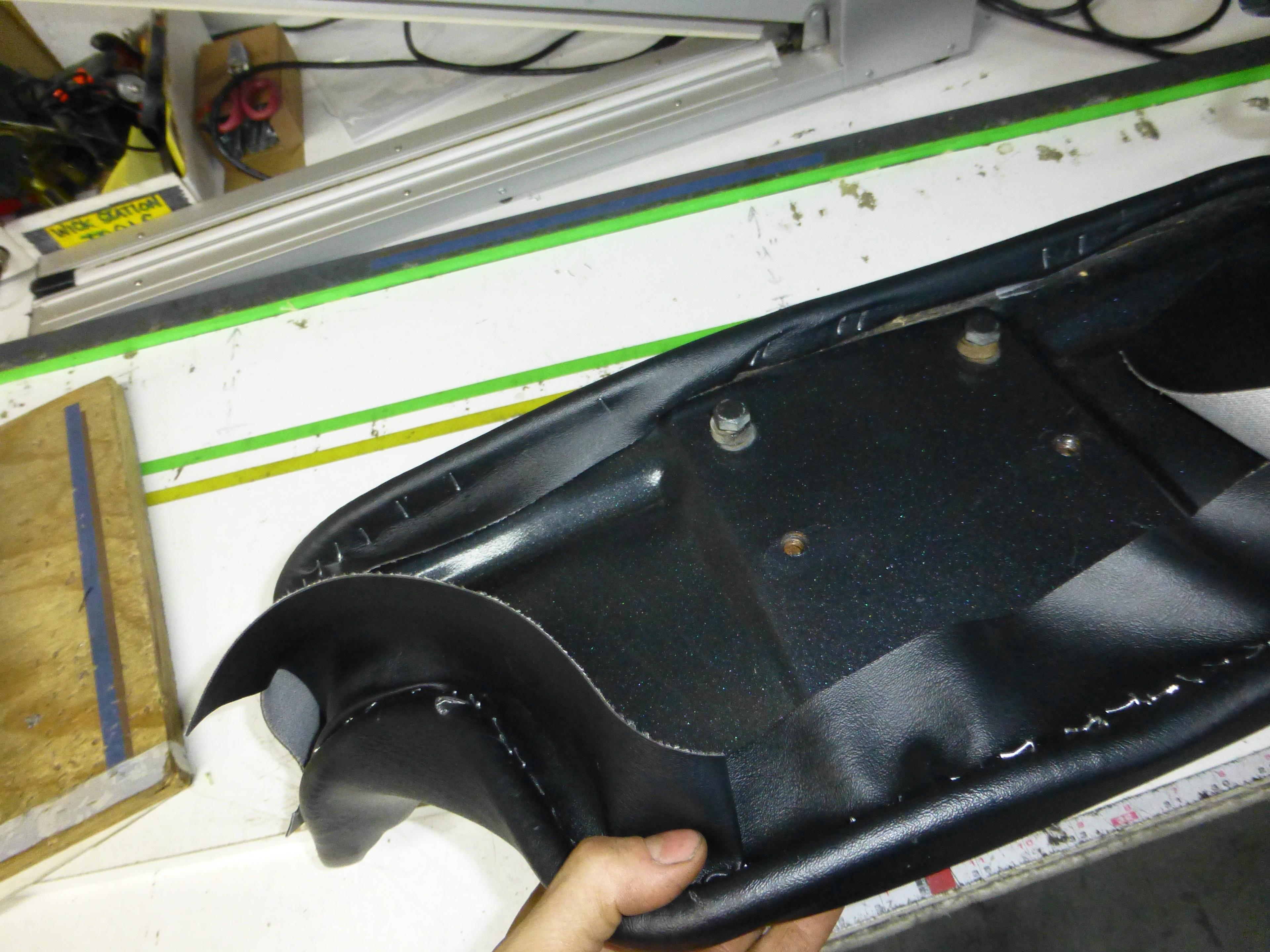Ever try to shove a golf ball through a garden hose? That is kind of what it was like trying to stretch the vinyl over the seat back. This is where the heat gun technician skills really kicked in.