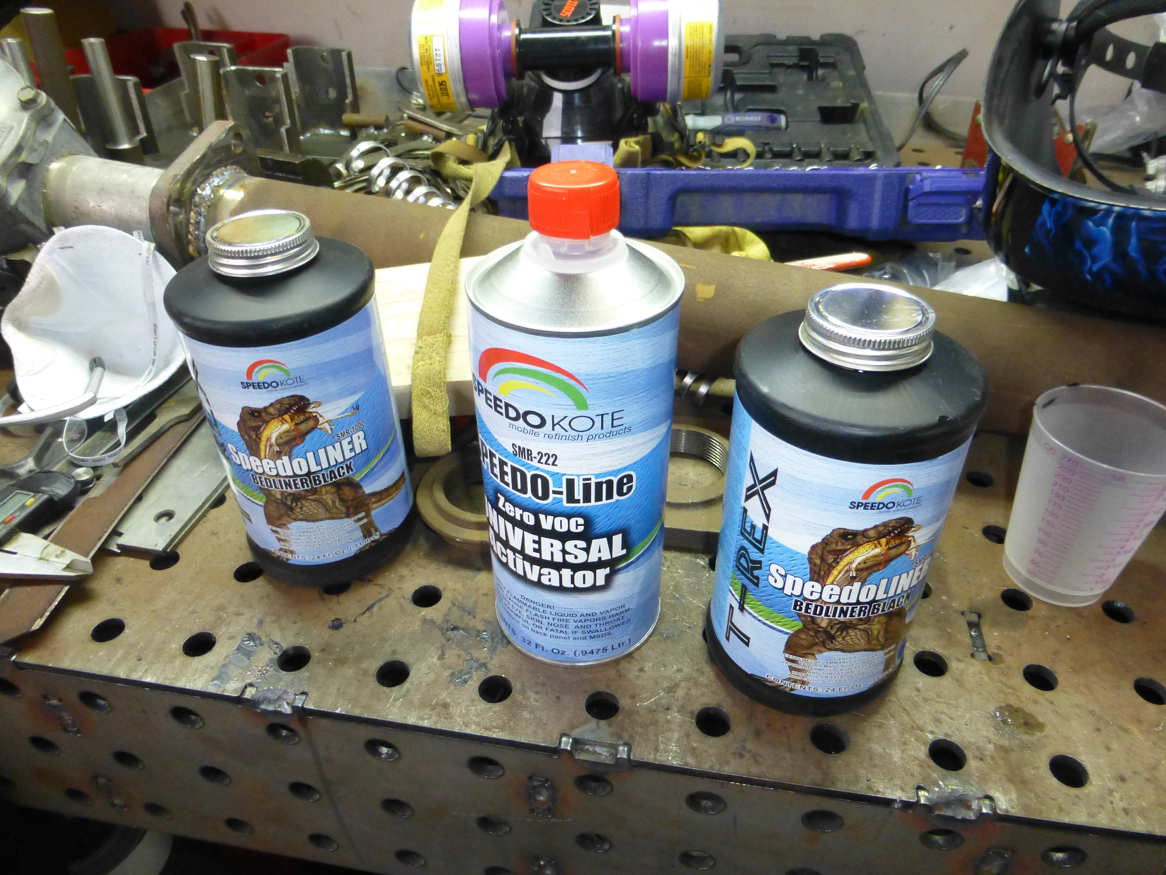 T Rex bedliner. I always know I’m in good hands when the label on the bottle has a picture of vicious predator chomping down on the helpless.