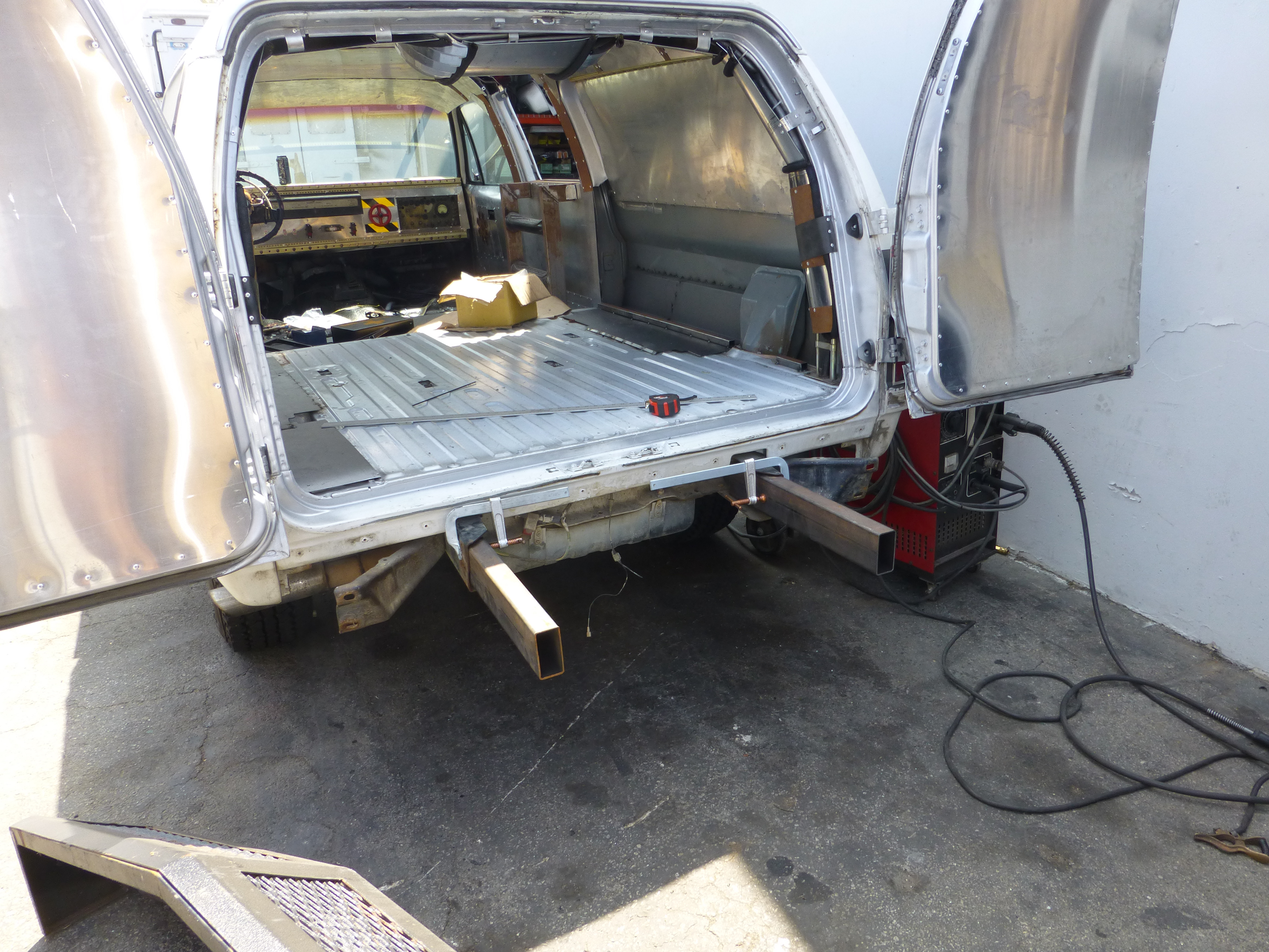 While I welded the rear door shut, I made the front doors still operational so we didn’t have to go all Dukes of Hazard.