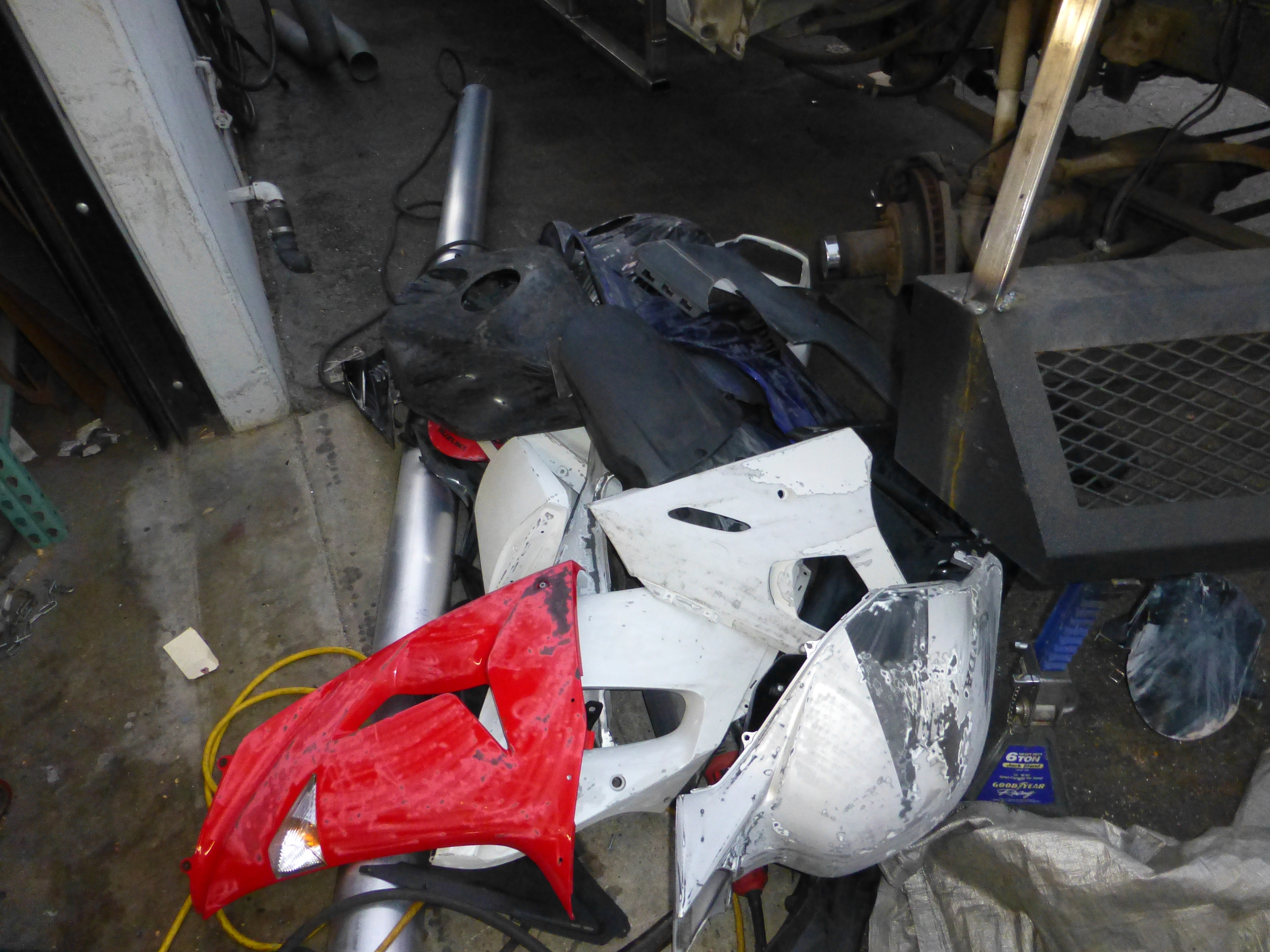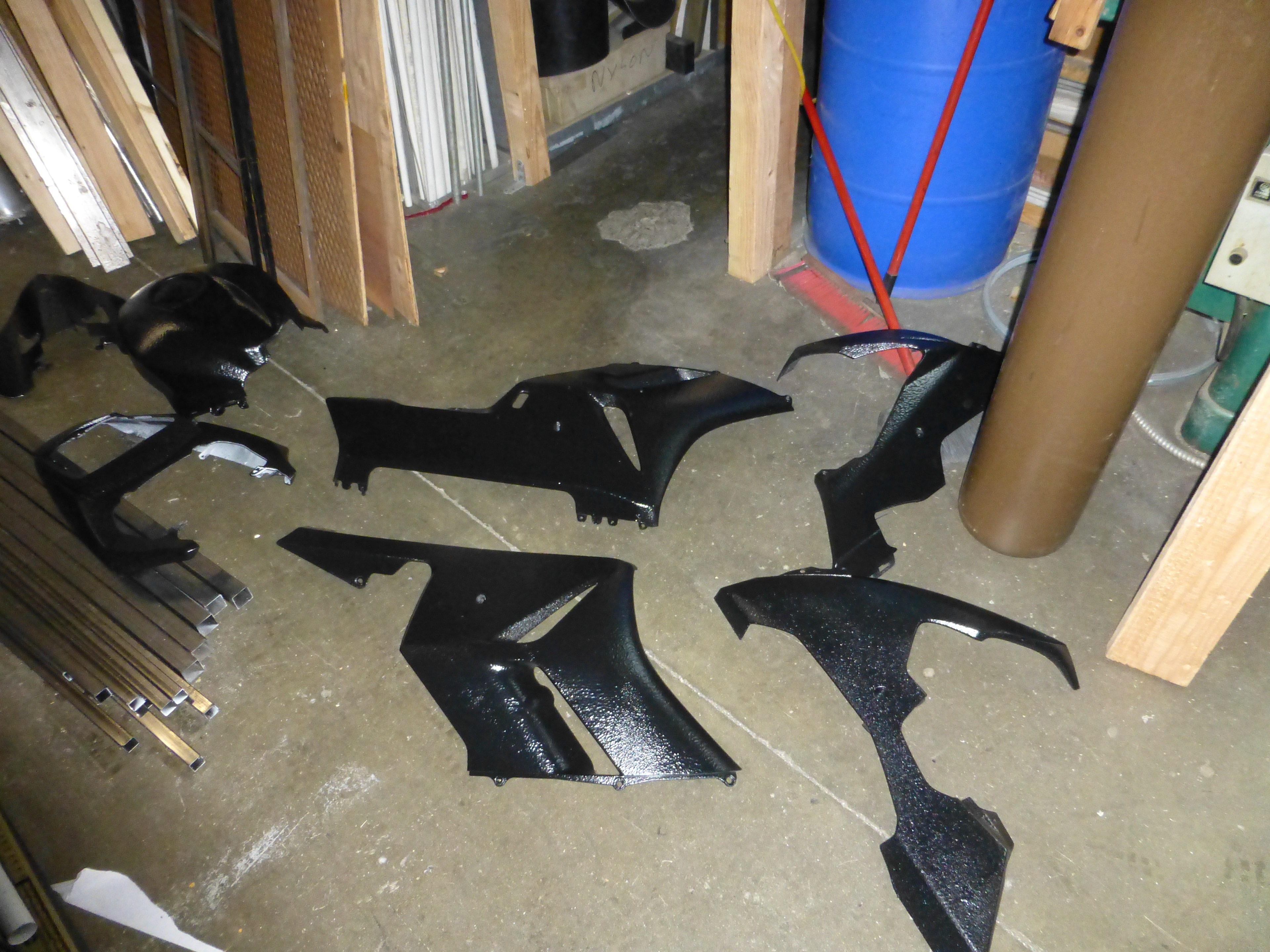 After some failed begging, borrowing and stealing, I found some cheap motorcycle fairings on craigslist. These will add some shape to all the flat sheet metal surfaces.