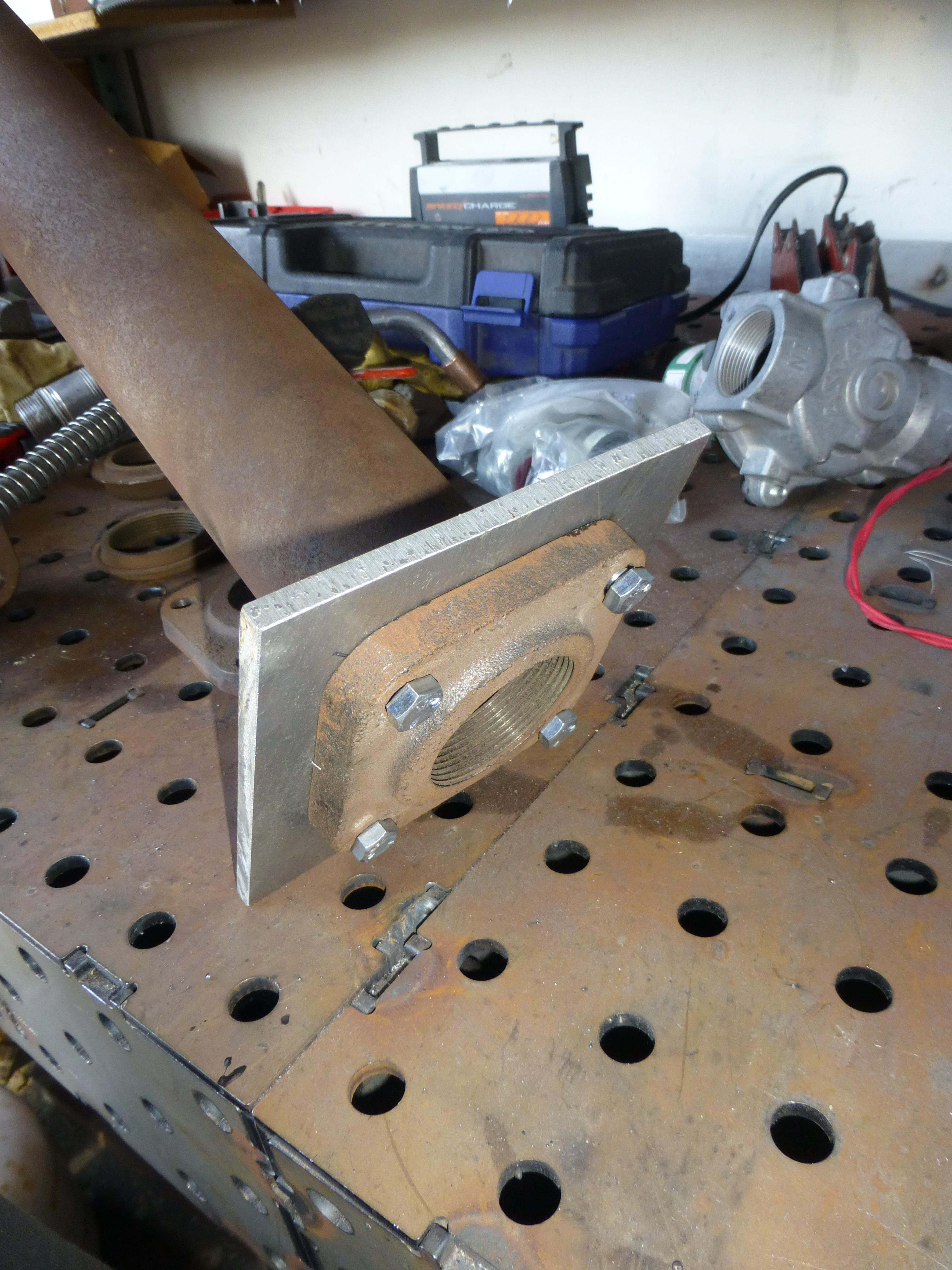 The welded aluminum assembly with the flange attached.