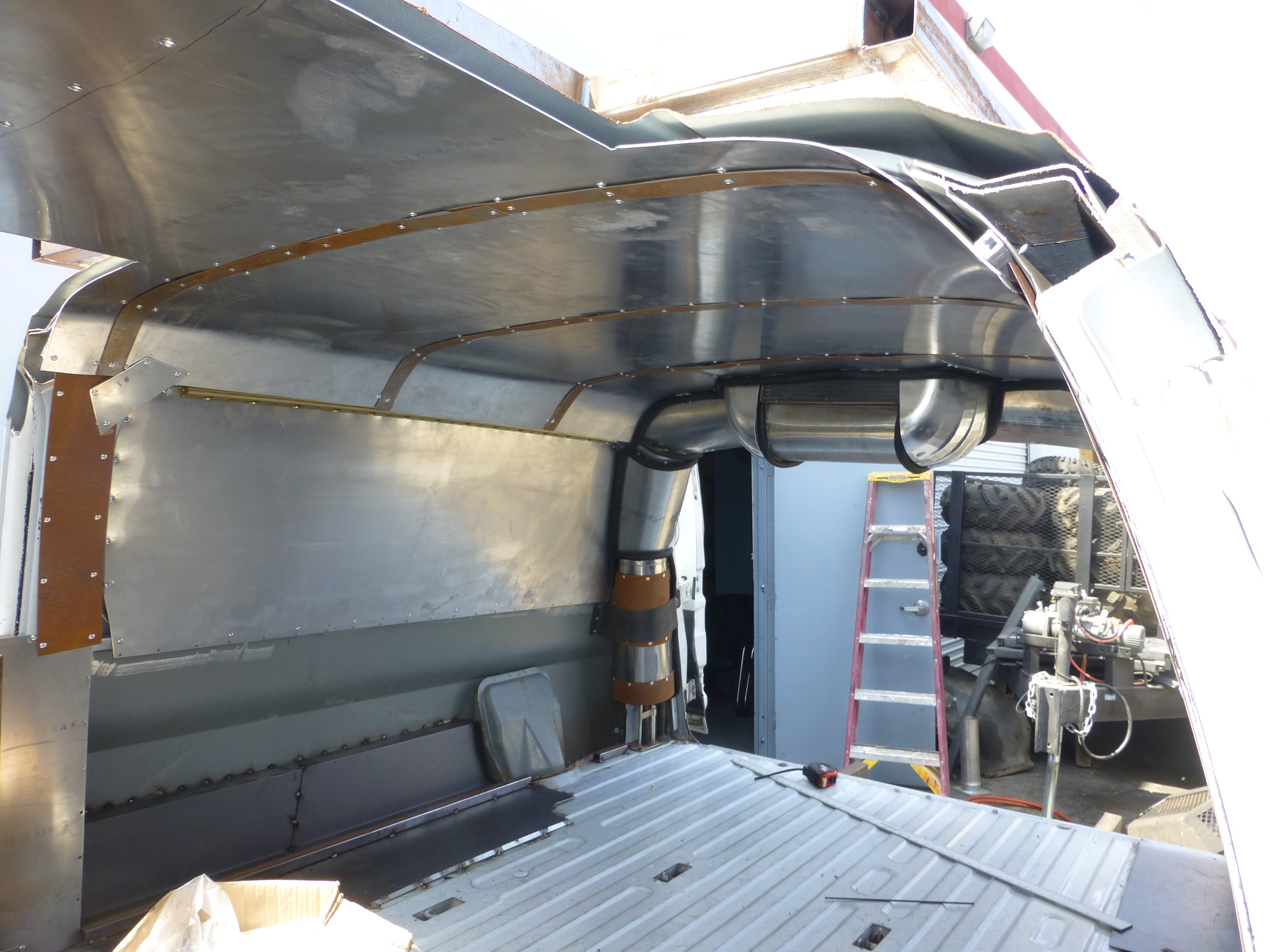 Where the back seats previously resided, that place that normal people put the kids, we now have an access point to get to the roof gunner position. Not quite as lounge worthy as before, but the foam rubber floor does add some squishy luxury.