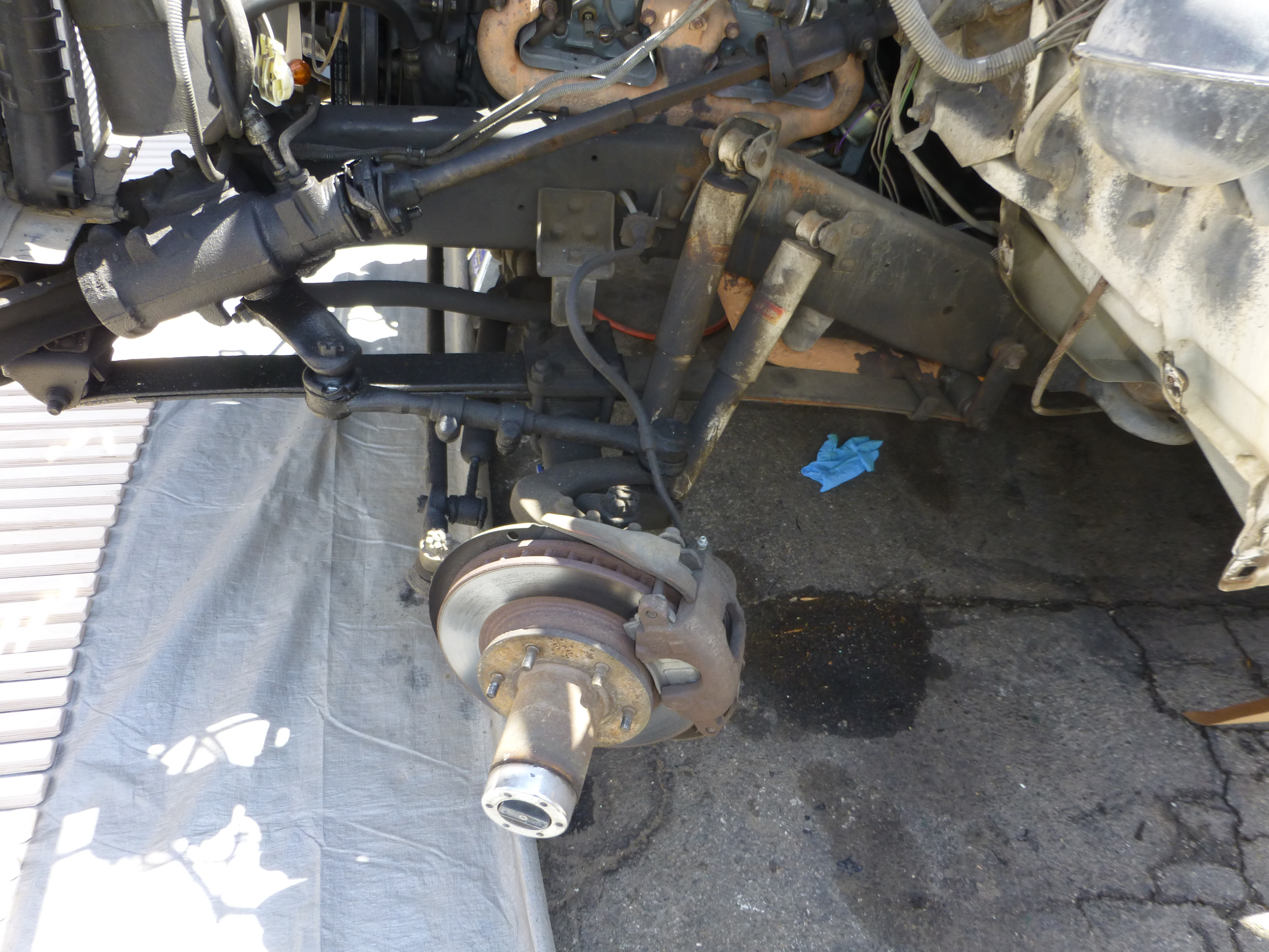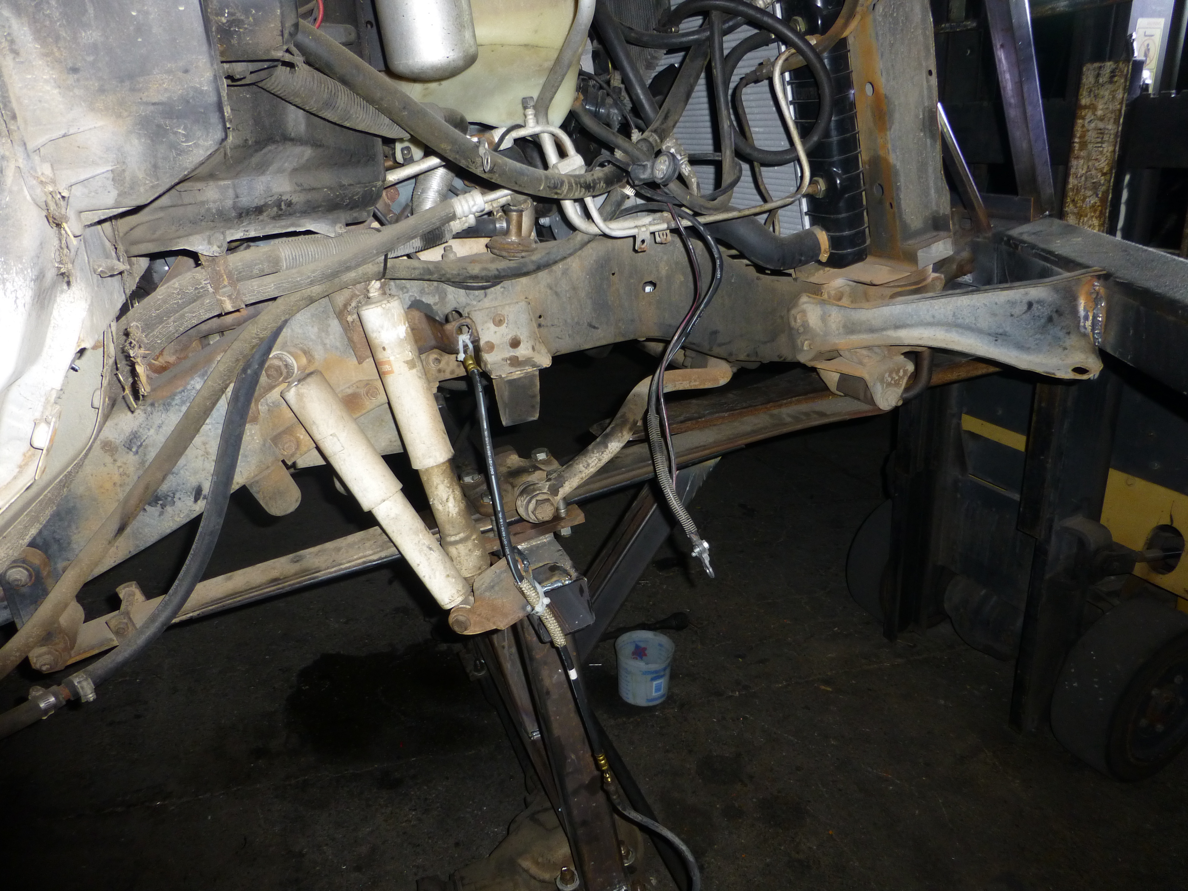 Moving to the front end I was greeted with some additional challenges. It turns out that unlike the rear end, this axle has to do some additional wizardry if I wanted to do more than go in a straight line. After great contemplation, I decided that dropping the suspension 32 inches was going to create a situation that cannot easily be solved by what I learned in my high school geometry class.