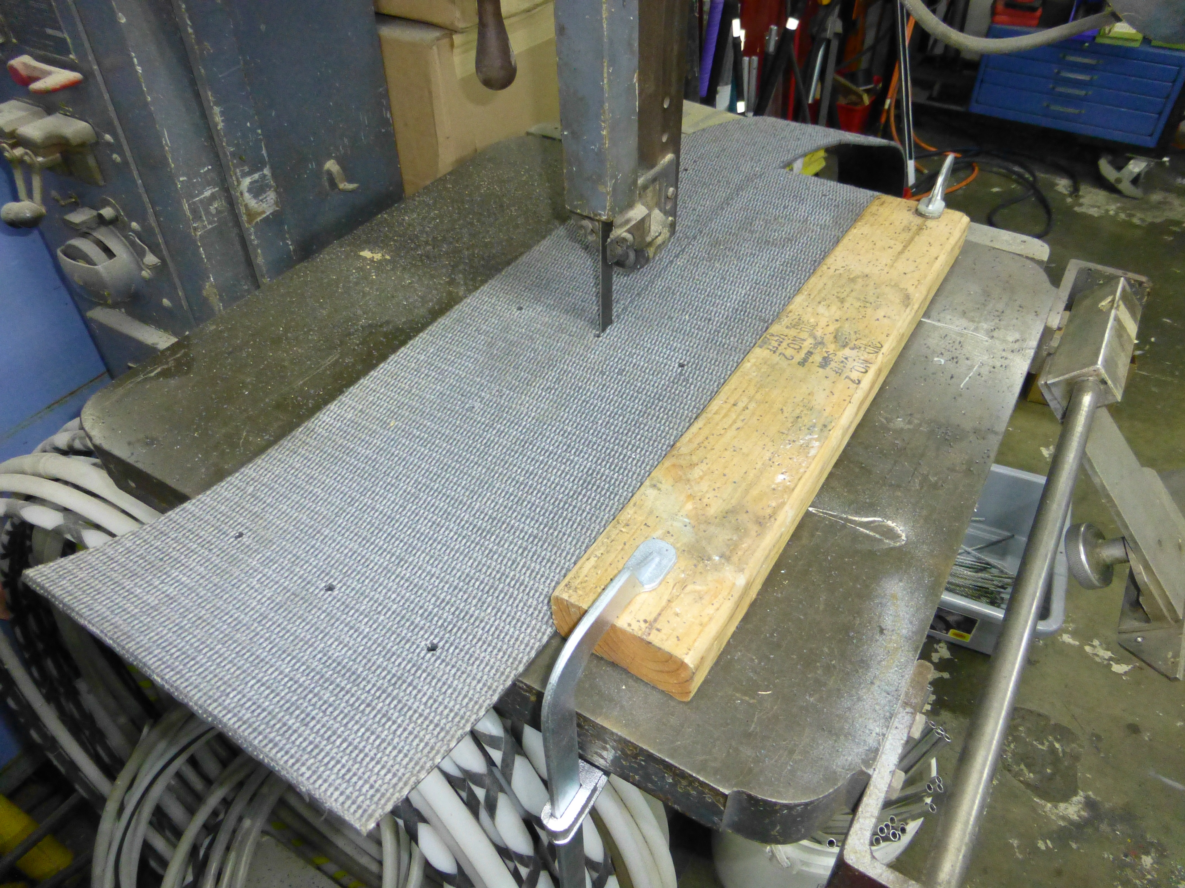 So the tracks are made out of surplus conveyor belt. It’s lightweight and best of all, I already had it. The bandsaw made quick work of this one.