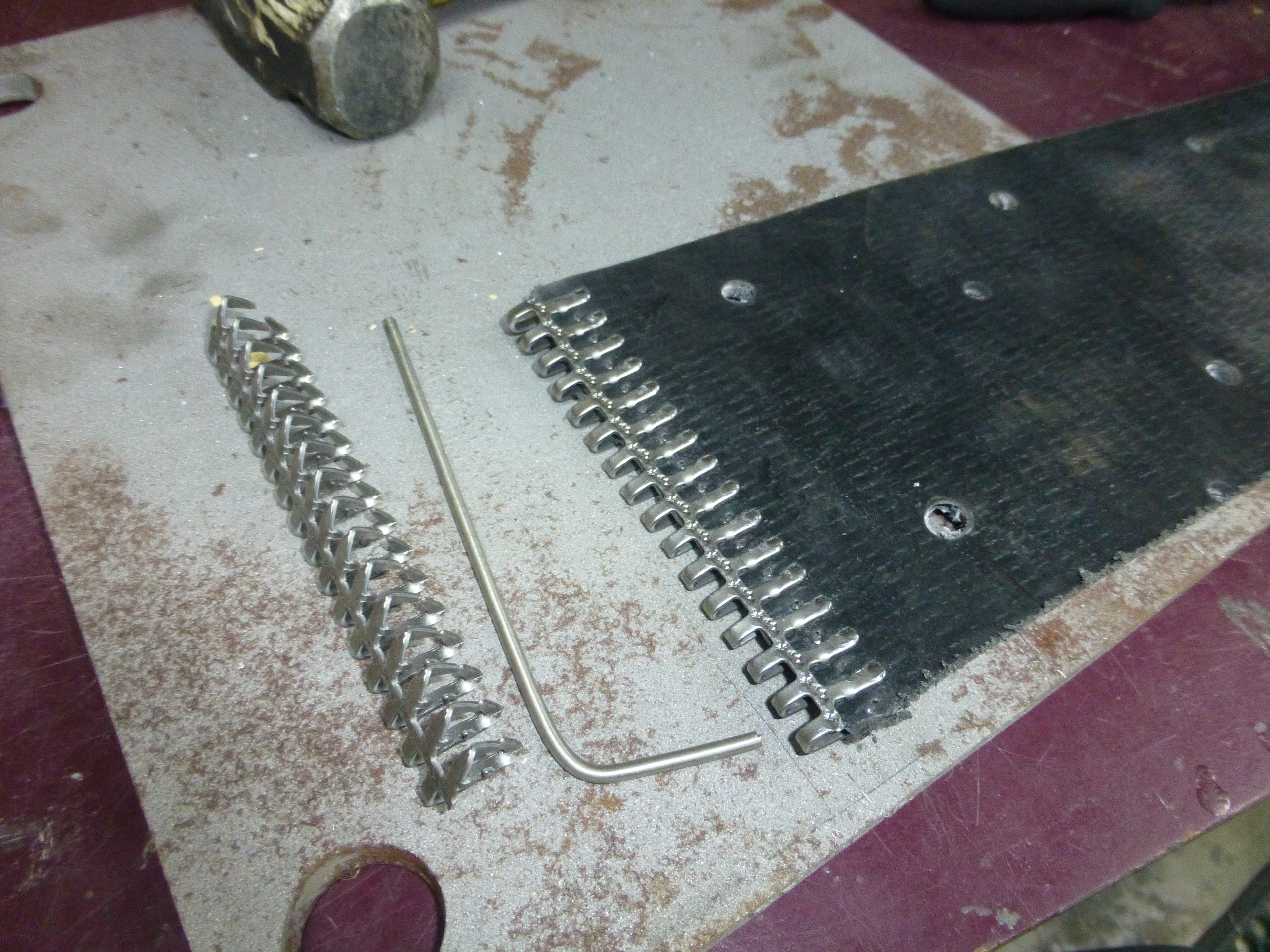 Some machined and rounded over float bars to allow the track height to vary with the terrain.