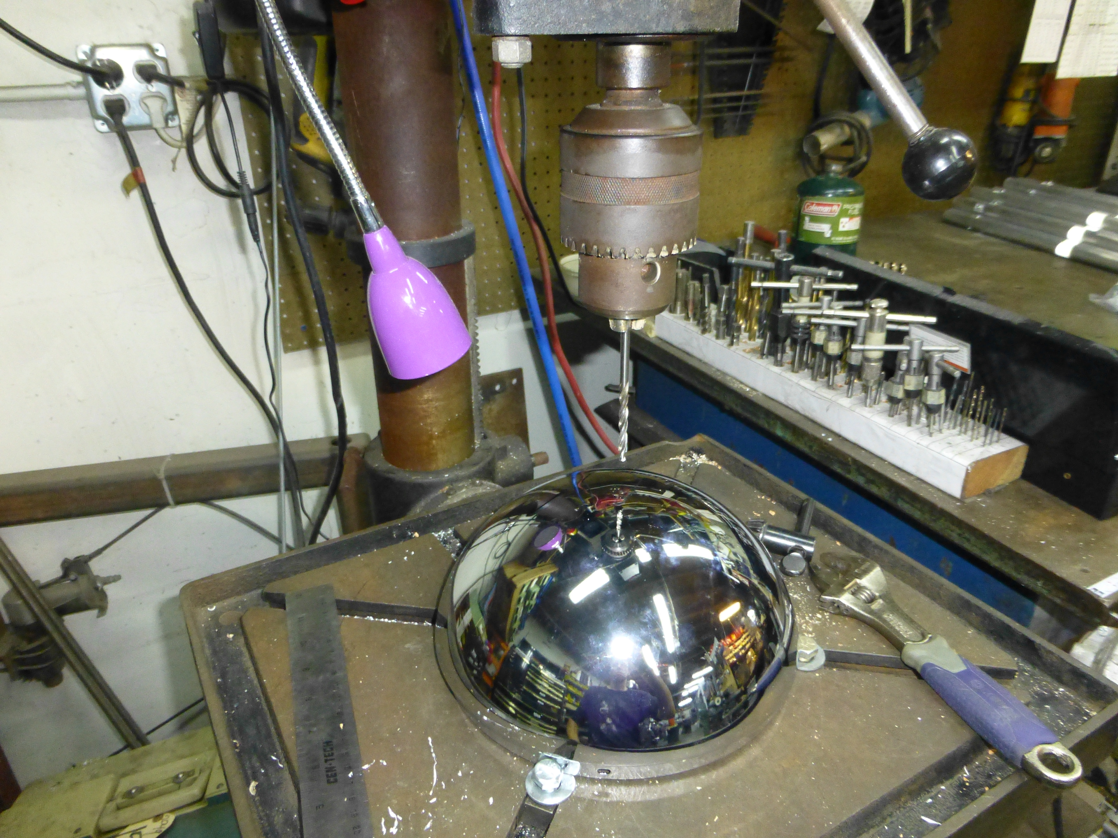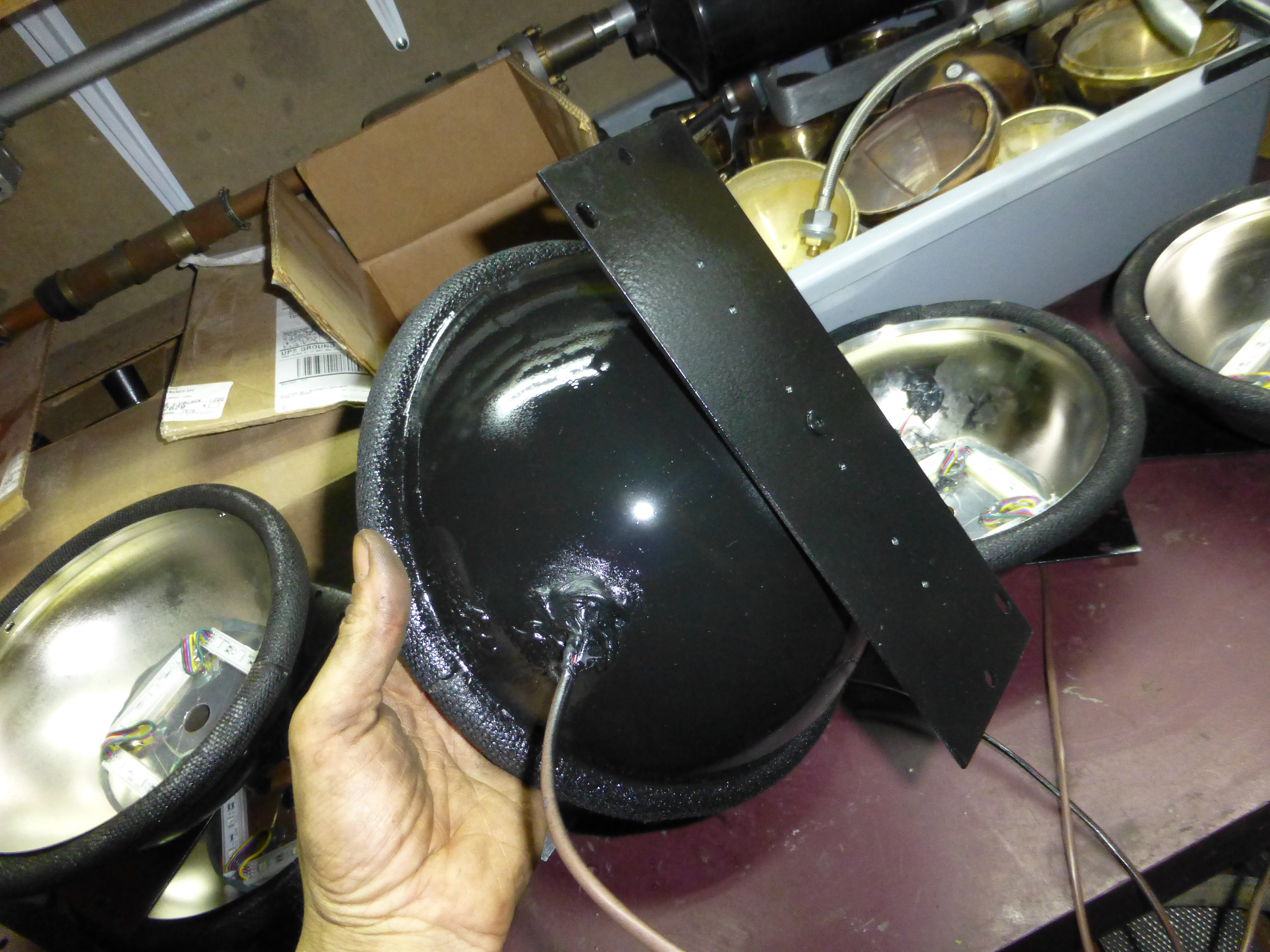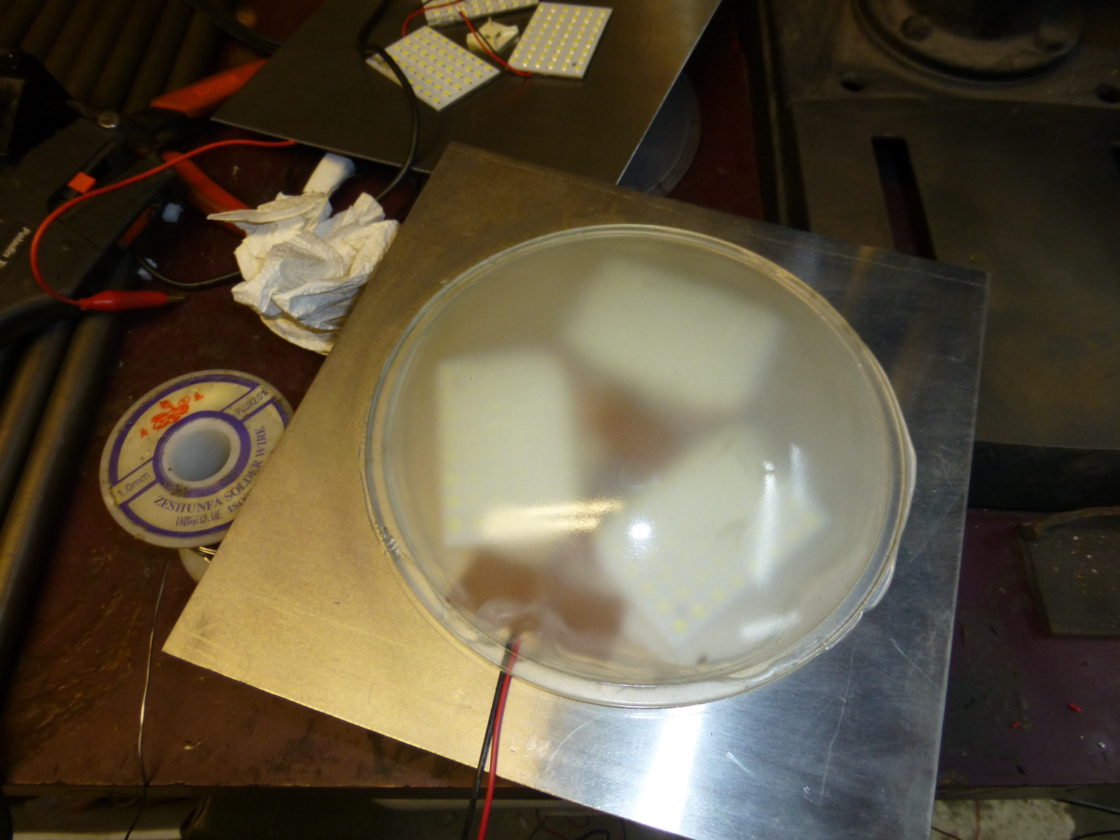 A clear dome is glued on top of lights.