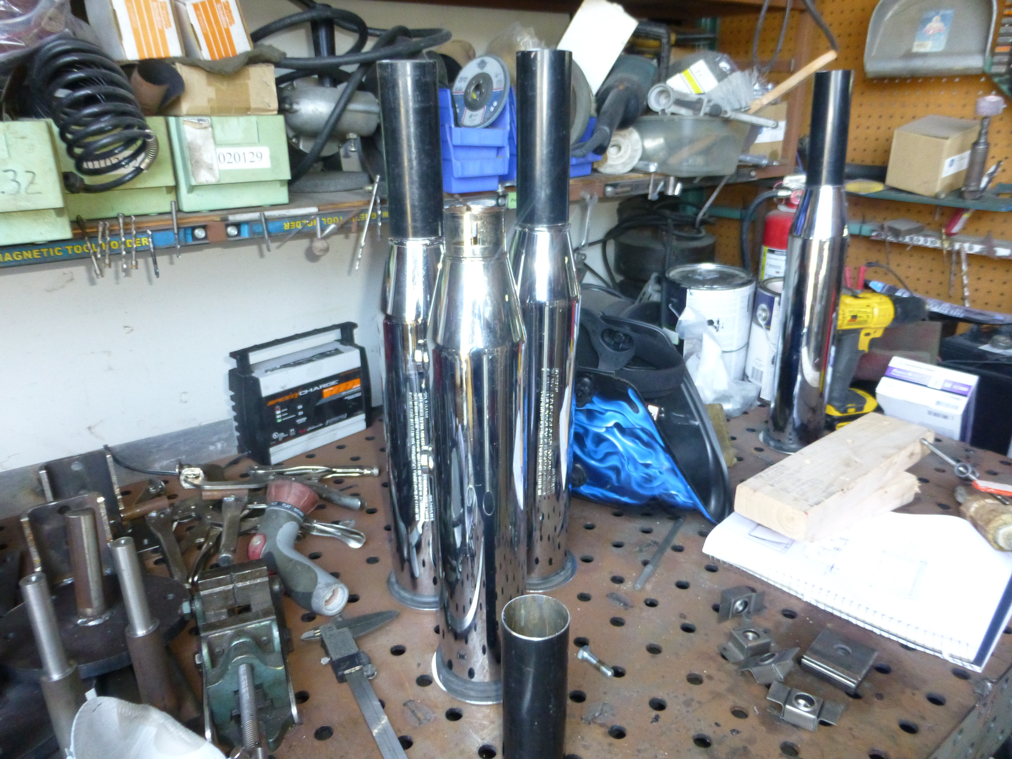 Someone threw out some perfectly good Harley exhaust pipes. Perfect for making some artillery shell props. Just add 1 pound of black powder… I mean, cap off the ends, you get the idea.