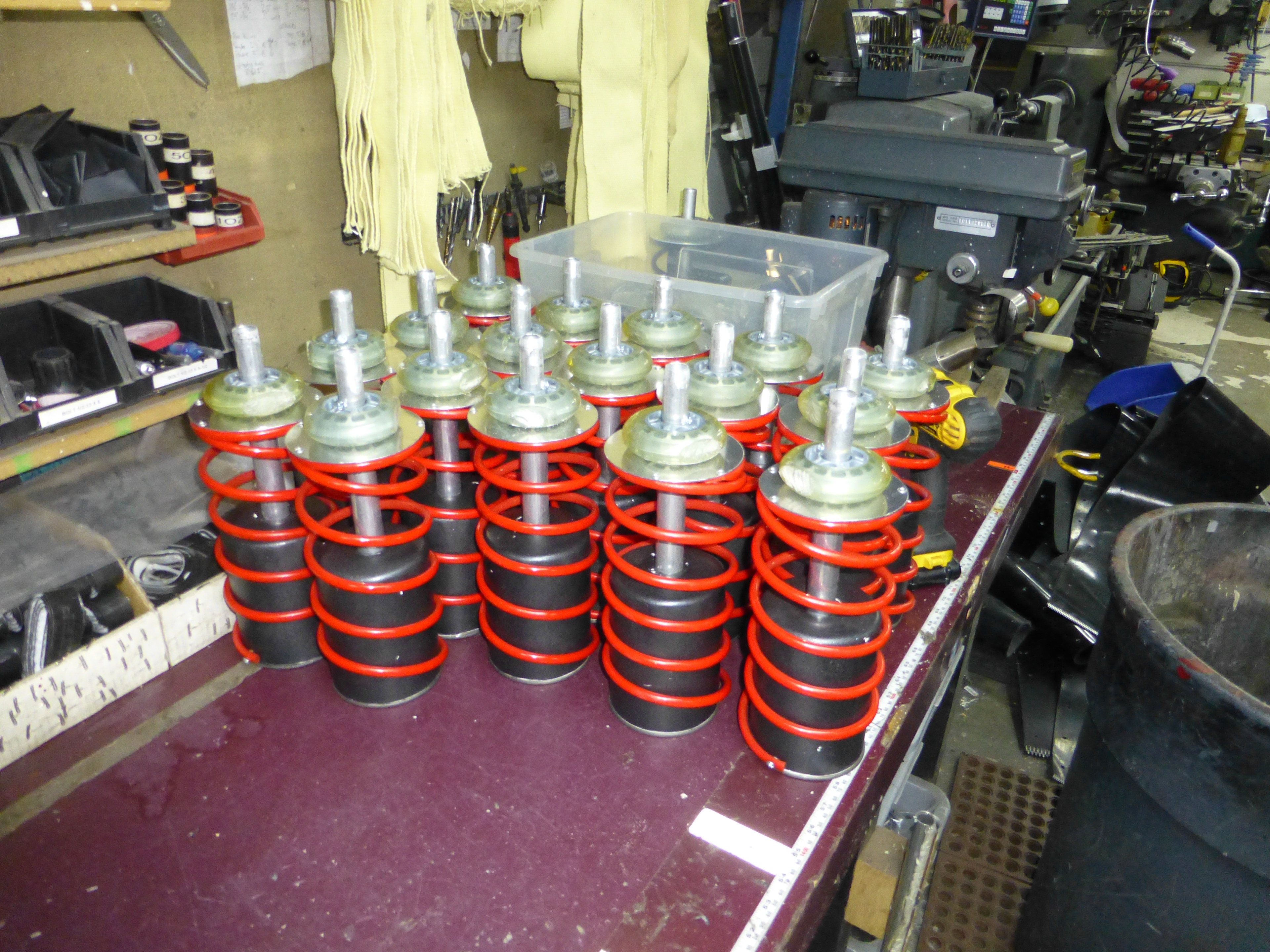 So this vehicle requires a ton of fake shocks for all the tracks. So how do I make all these things with no budget? It turns out that surplus oil filters for vehicles that no longer exist are pretty cheap.