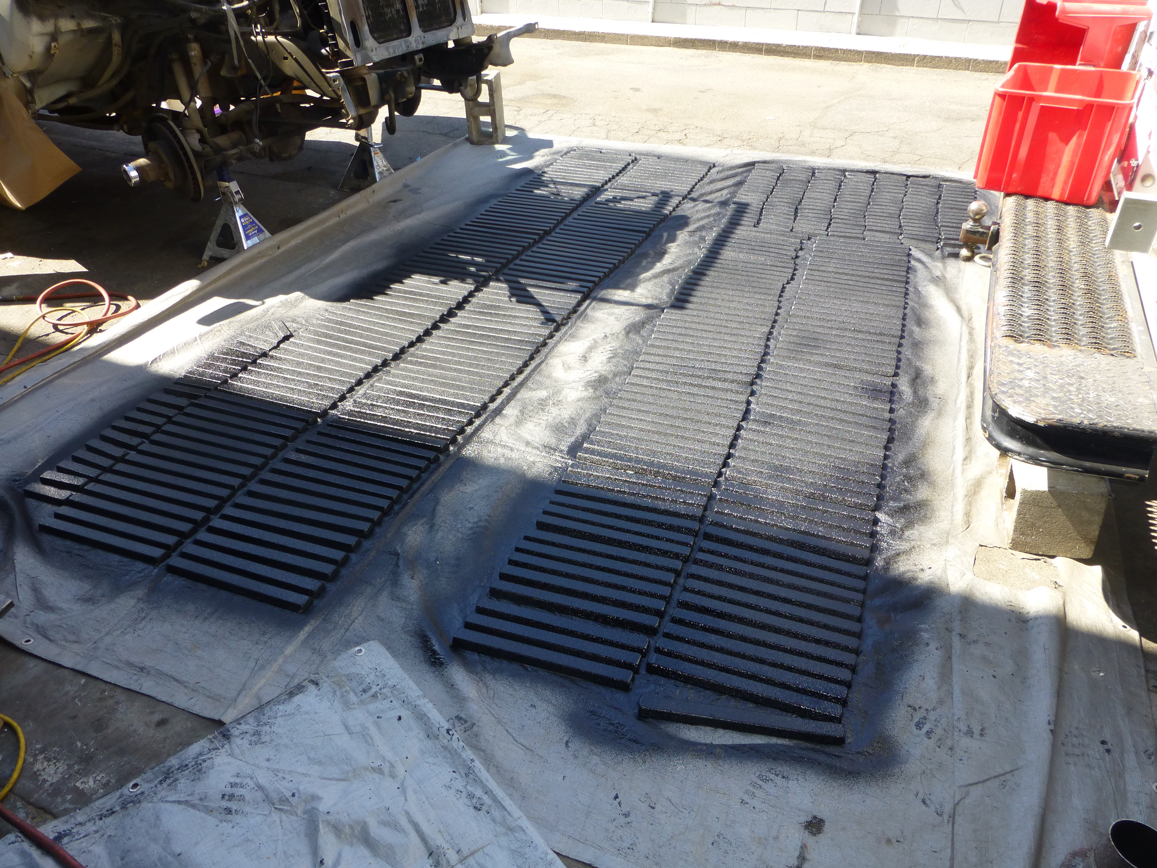 After sanding them down, a nice coat of urethane bedliner made it, oh so pretty.