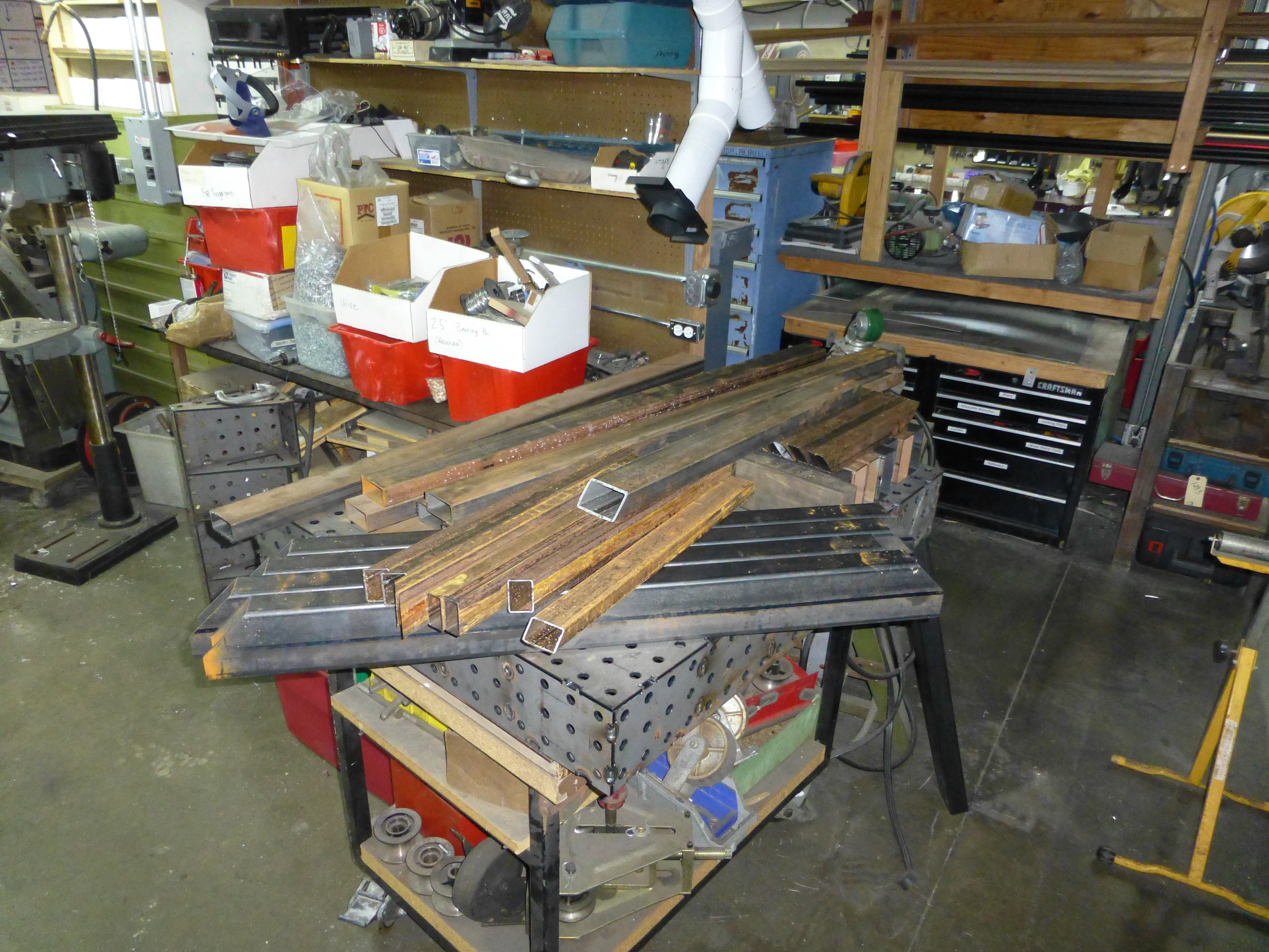 Steel, the other heavy metal. I just need to space these out past the wheel hubs and mount the tracks on some flange bearings. It will practically build itself.