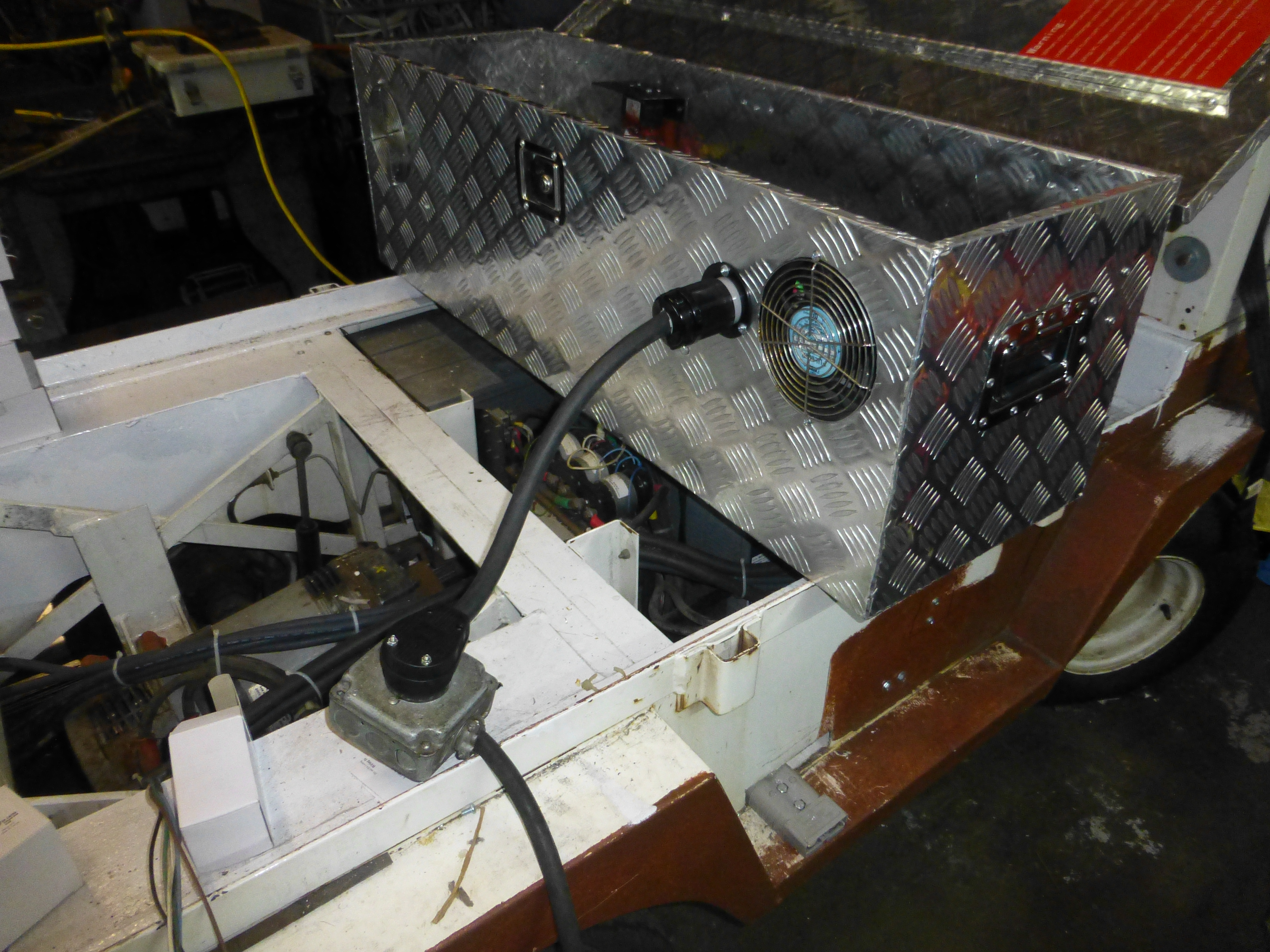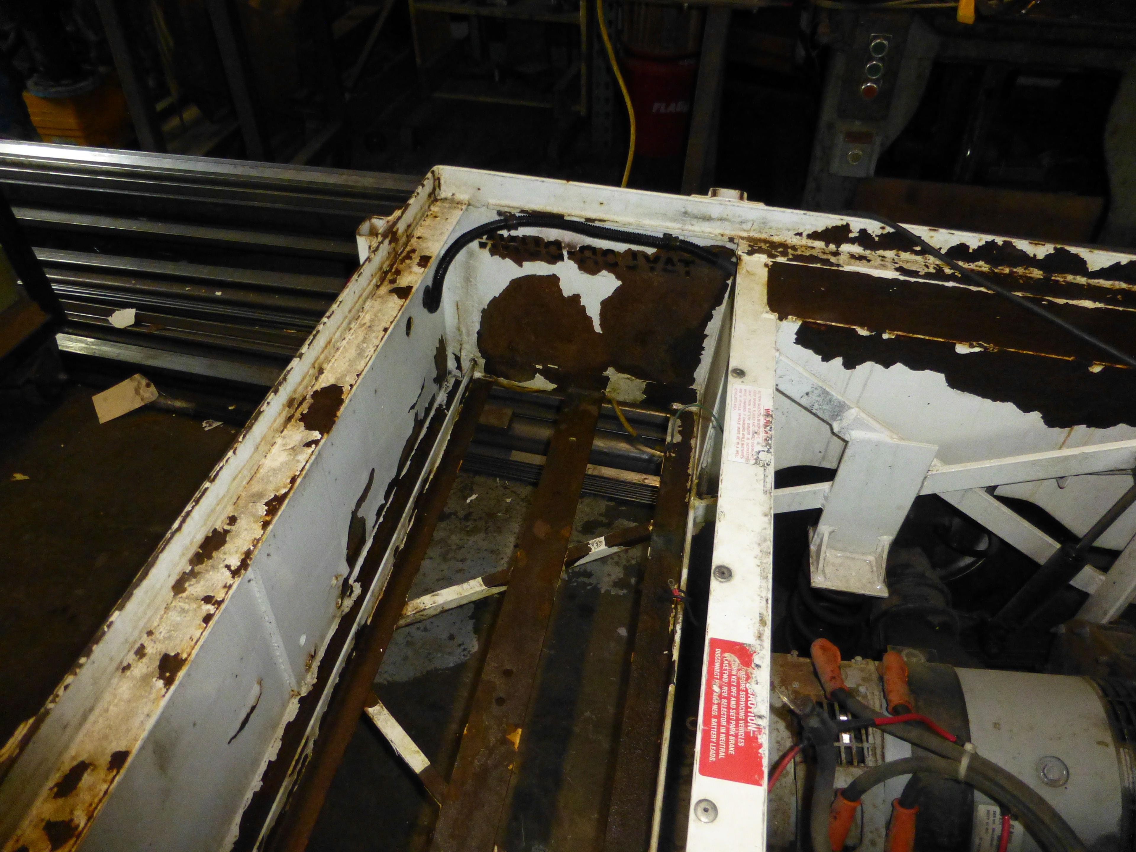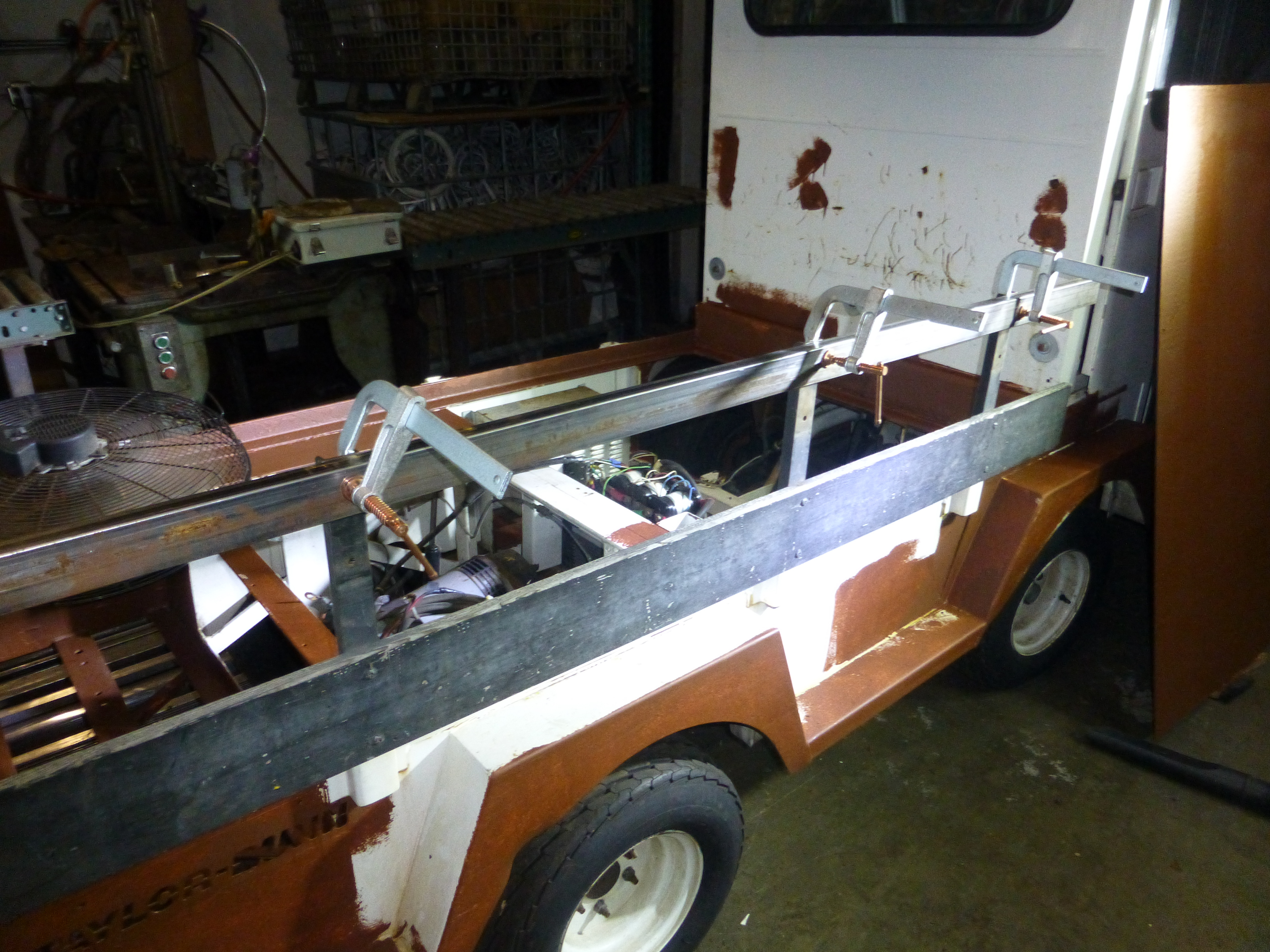 After thoroughly steam cleaning the cart, removing the dead batteries and grinding down the rust, I was able to fix all the damage with minimal welding.