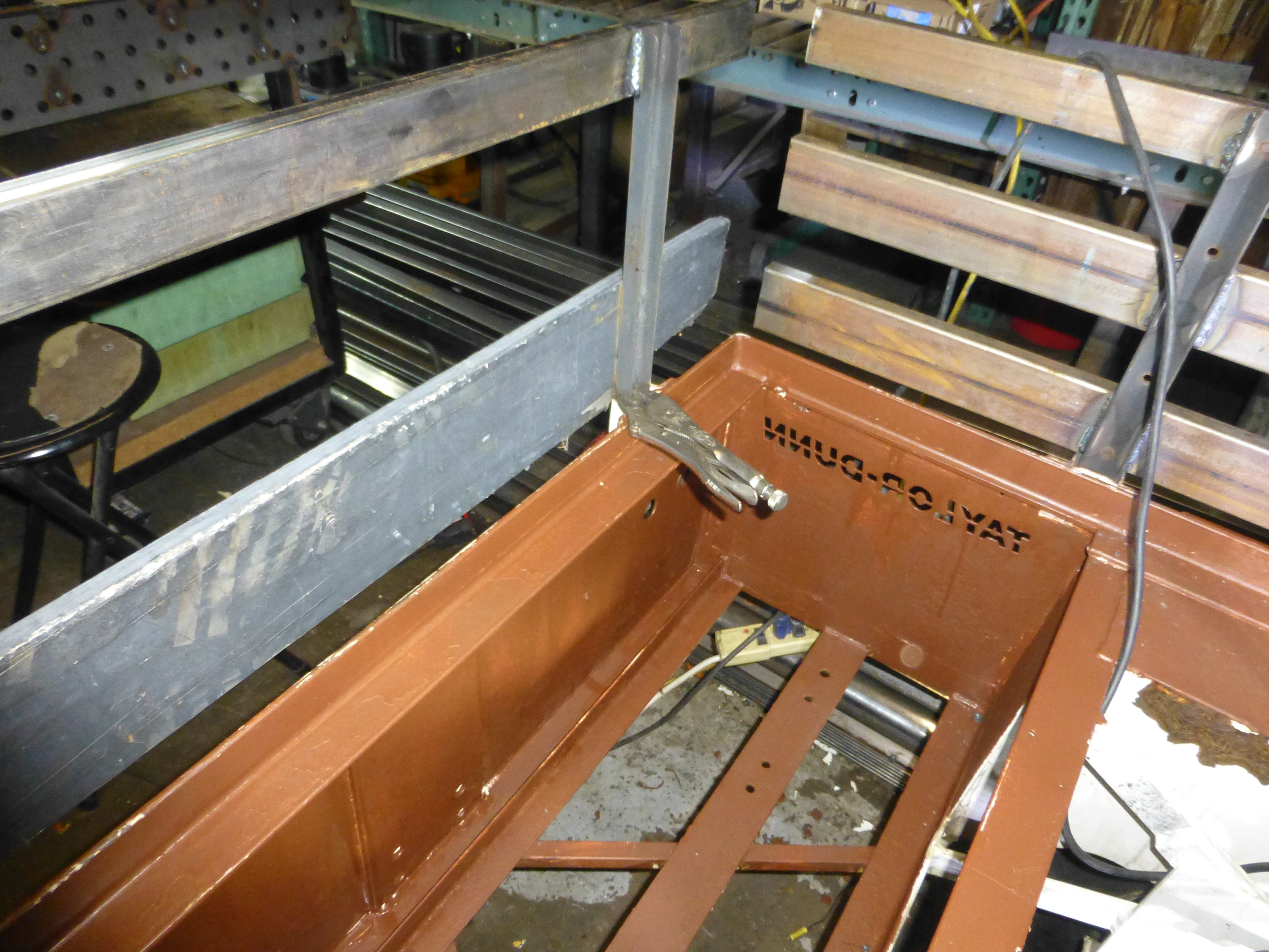I pulled out the big guns with the red oxide primer to give the protection and nostalgia of the Golden Gate Bridge. The side rails were damaged and left in disrepair. I quickly removed the worthless wood and welded up some more manly steel rails that can live up to whatever the future might bring.