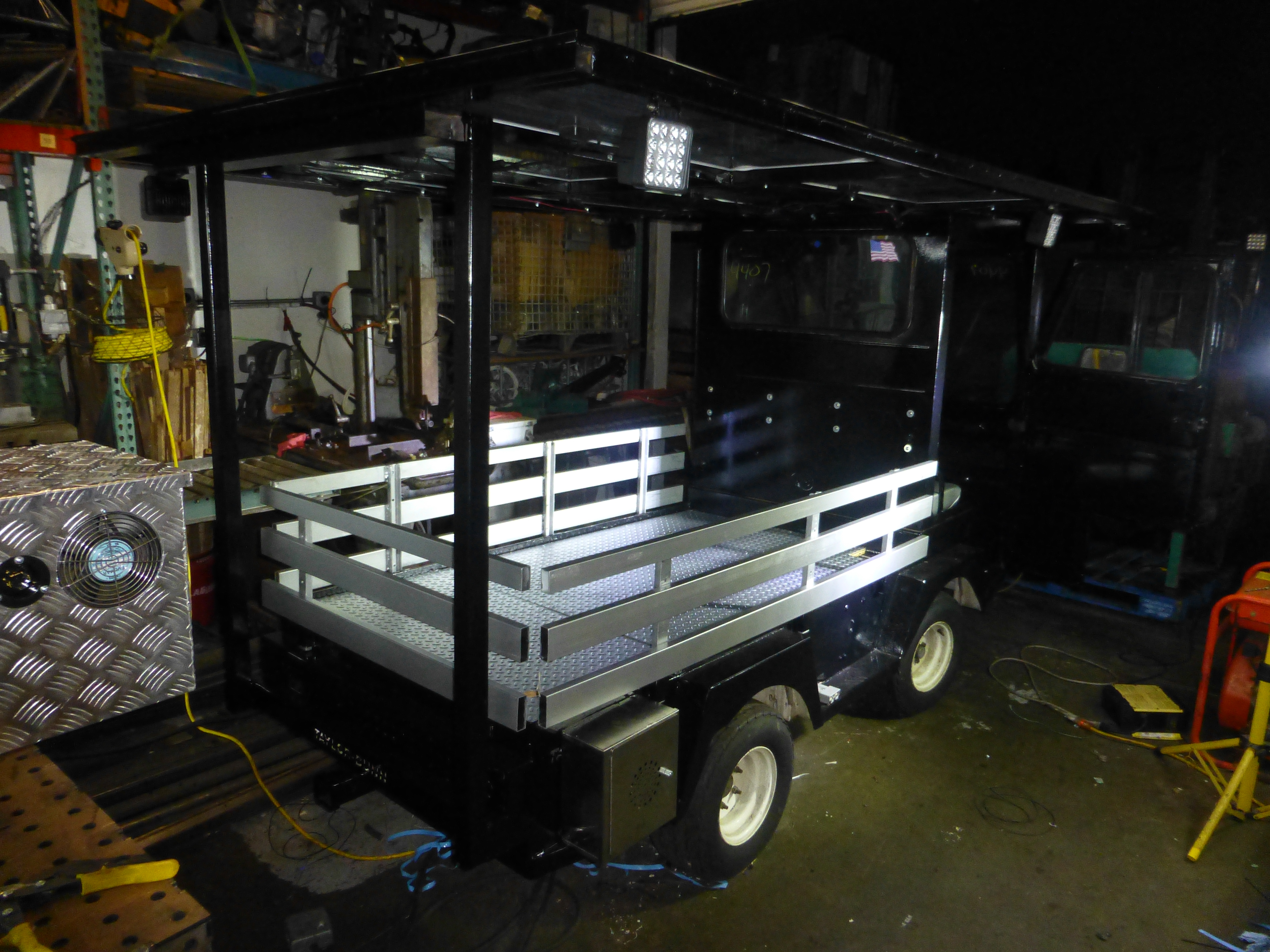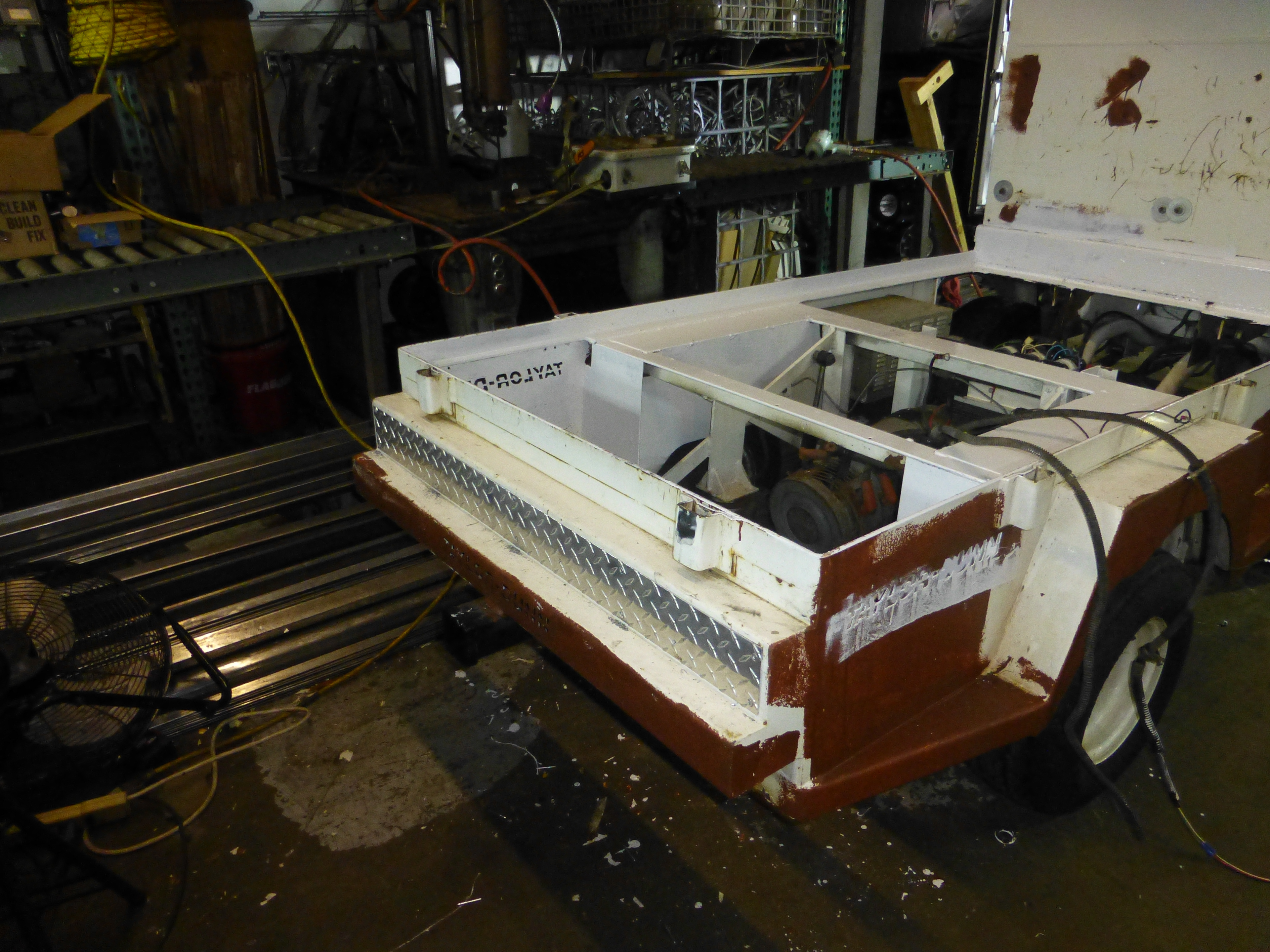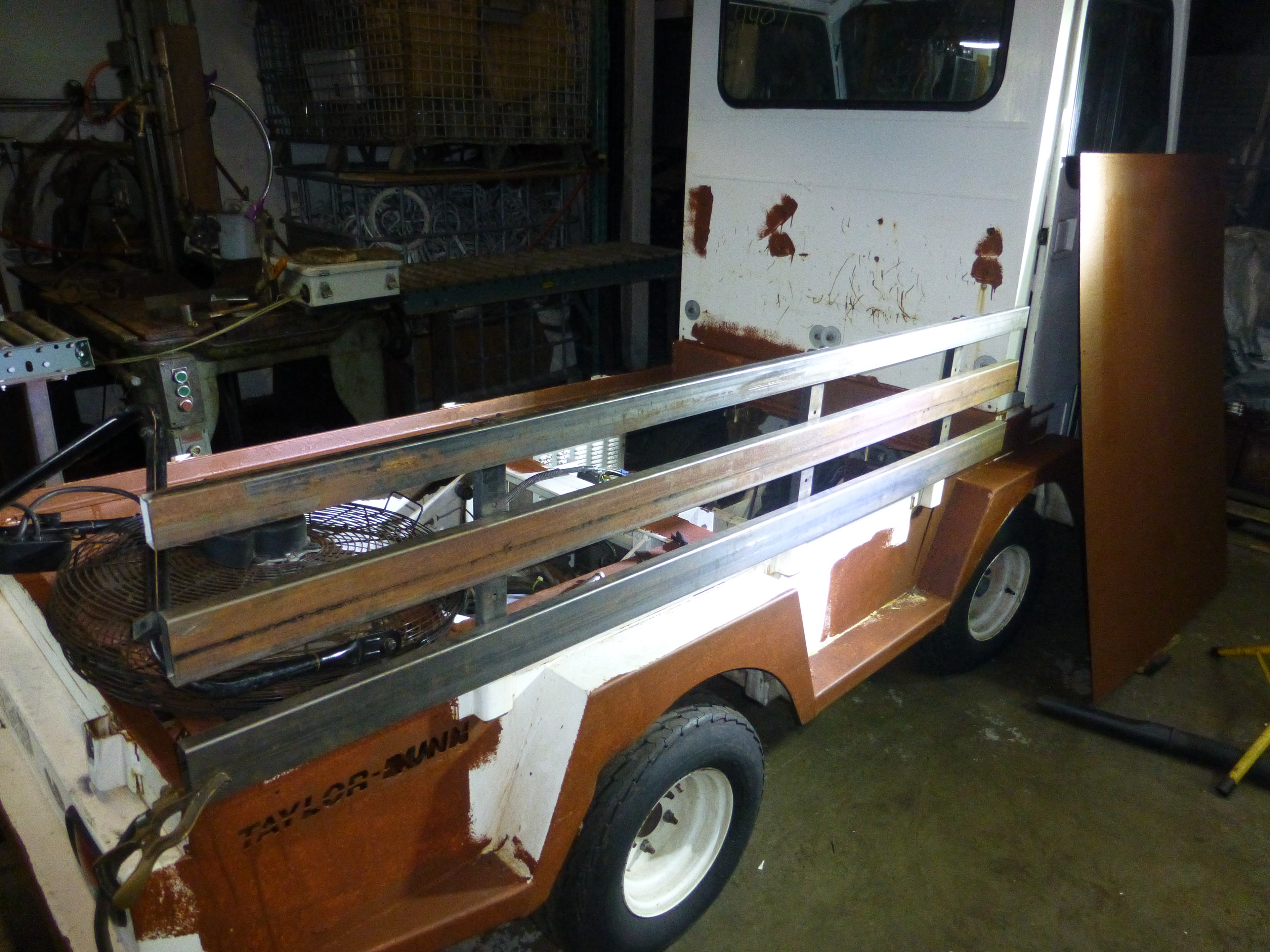 I managed to find a 48V Taylor-Dunn utility cart at auction. Like a high school romance, it had been ignored and disposed of when something shiny and new came along. However, I saw the potential in its sturdy frame that lie hidden under a patina of rust and dirt. The water had shown no mercy to the steel frame and the paint that was used by the factory was about as useful at protecting the metal as tit on a bull.