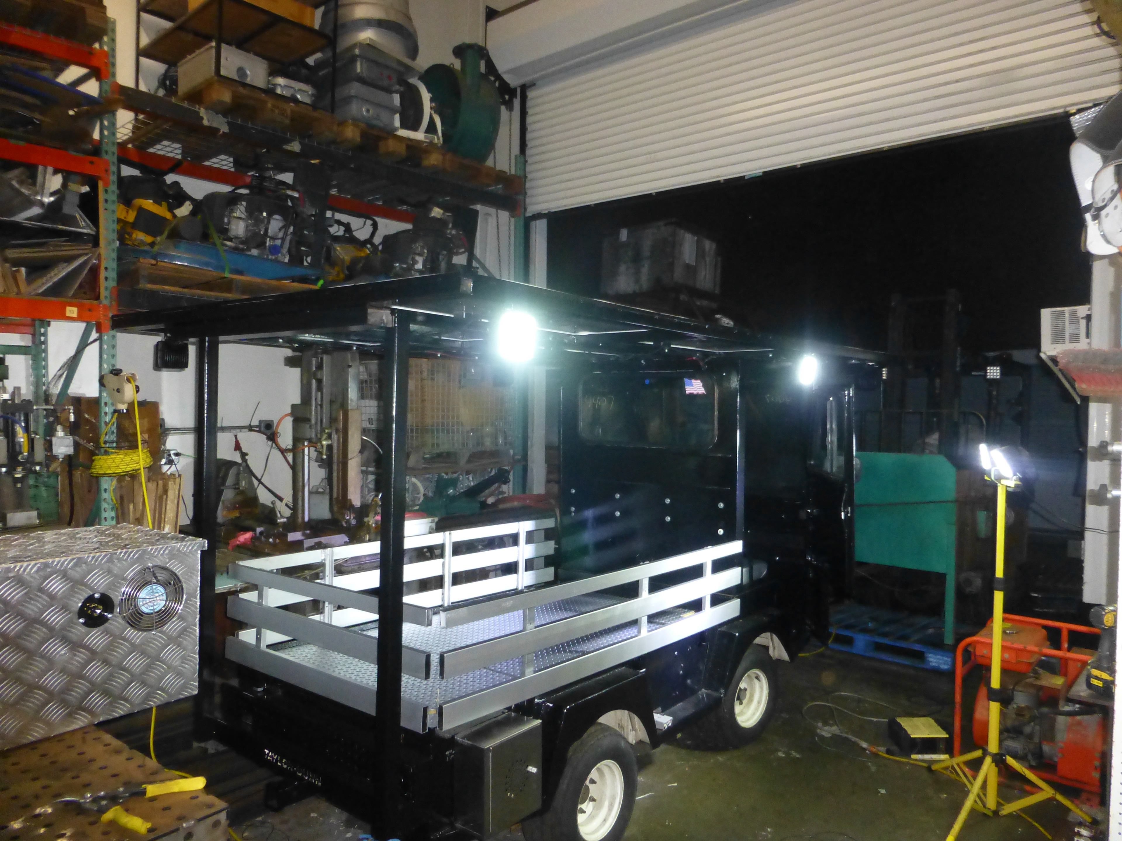 Knowing I could never compete with the power of the sun, I still found it necessary to add some lights of my own. LED floods were put on both sides and across the front. Hopefully the sun would understand as we stole its power during the day and shone it as our own at night.