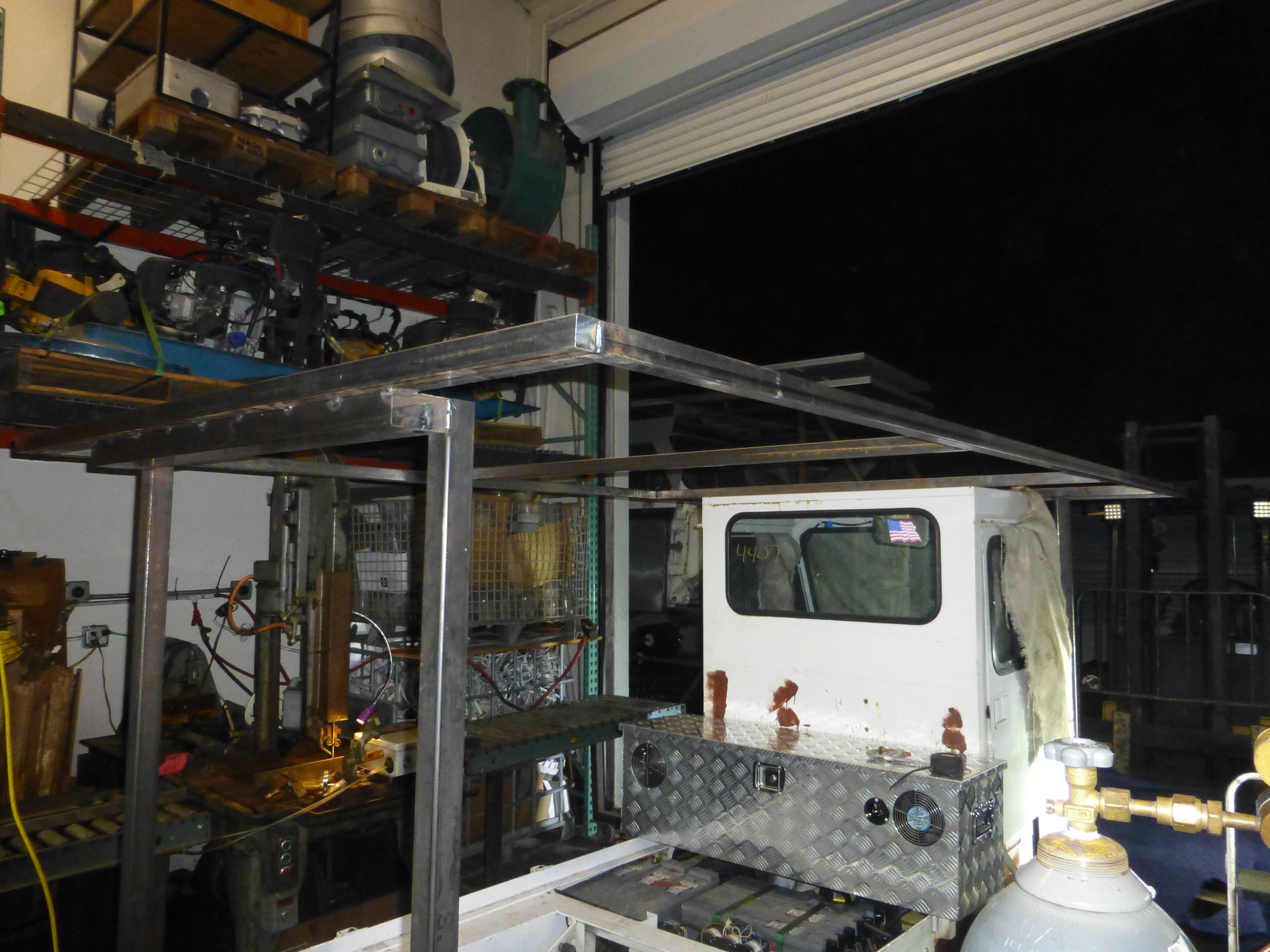 In a flash of light ...forgetting to put down my welding helmet, an idea occurred to me. After the obvious acknowledgment of possible retina damage, I realized that I can harness the power of light to solve my dilemma. I would use an electric utility truck to transport my electricity to everywhere I needed it, and adorn the top with solar panels so I never had to charge it.